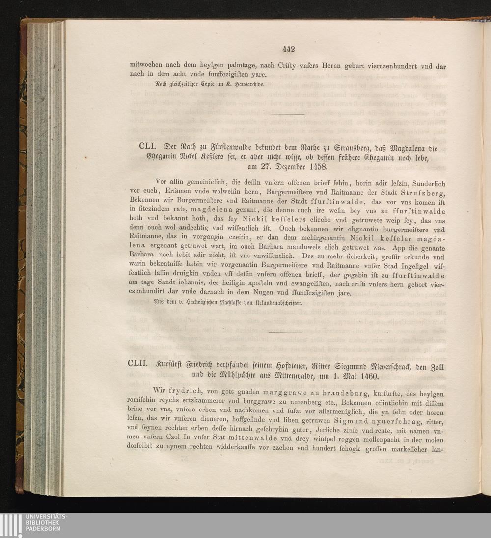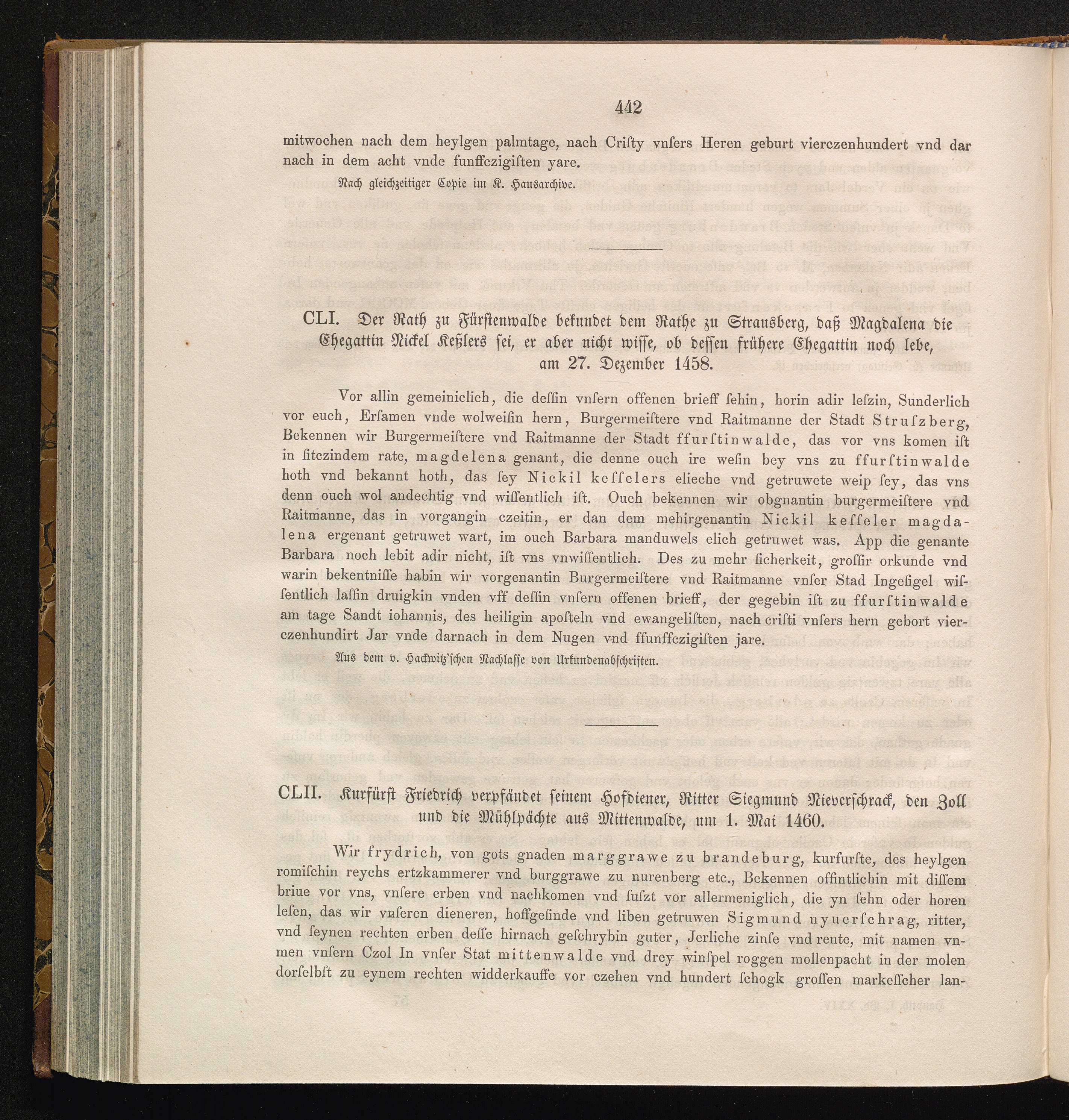 CLII. Kurfürst Friedrich verpfändet seinem Hofdiener, Ritter Siegmund Nieverschrack,[...]