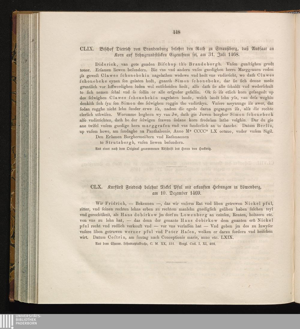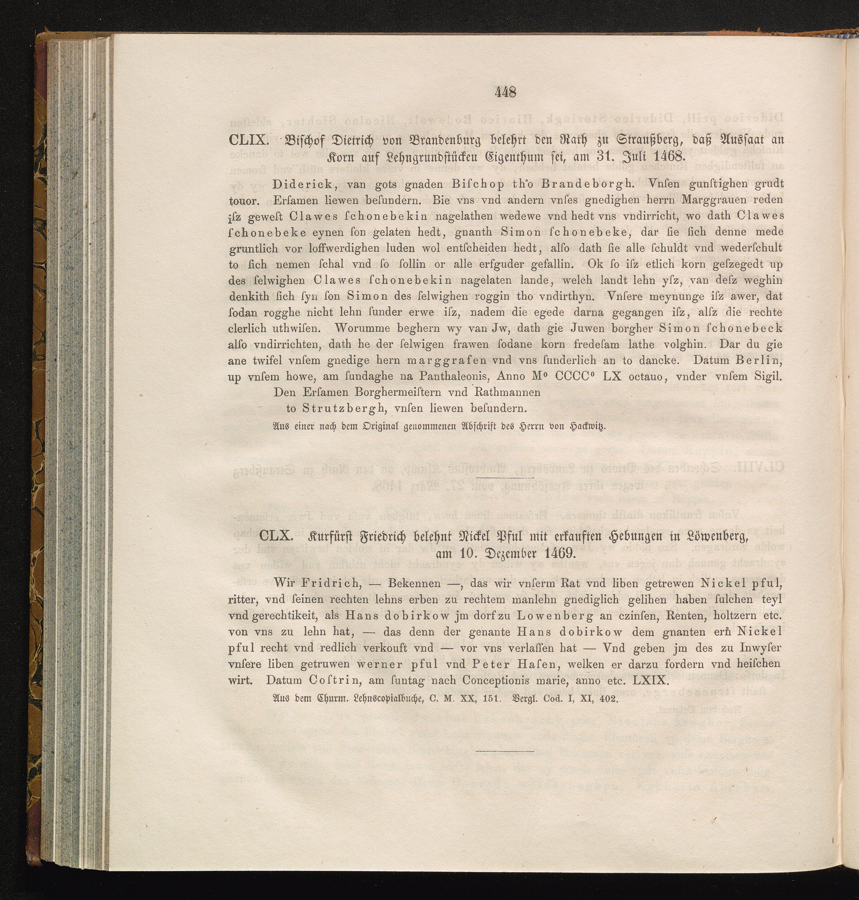 CLX. Kurfürst Friedrich belehnt Nickel Pful mit erkauften Hebungen in Löwenberg,[...]