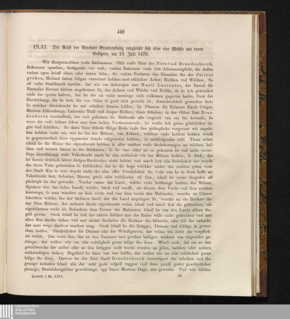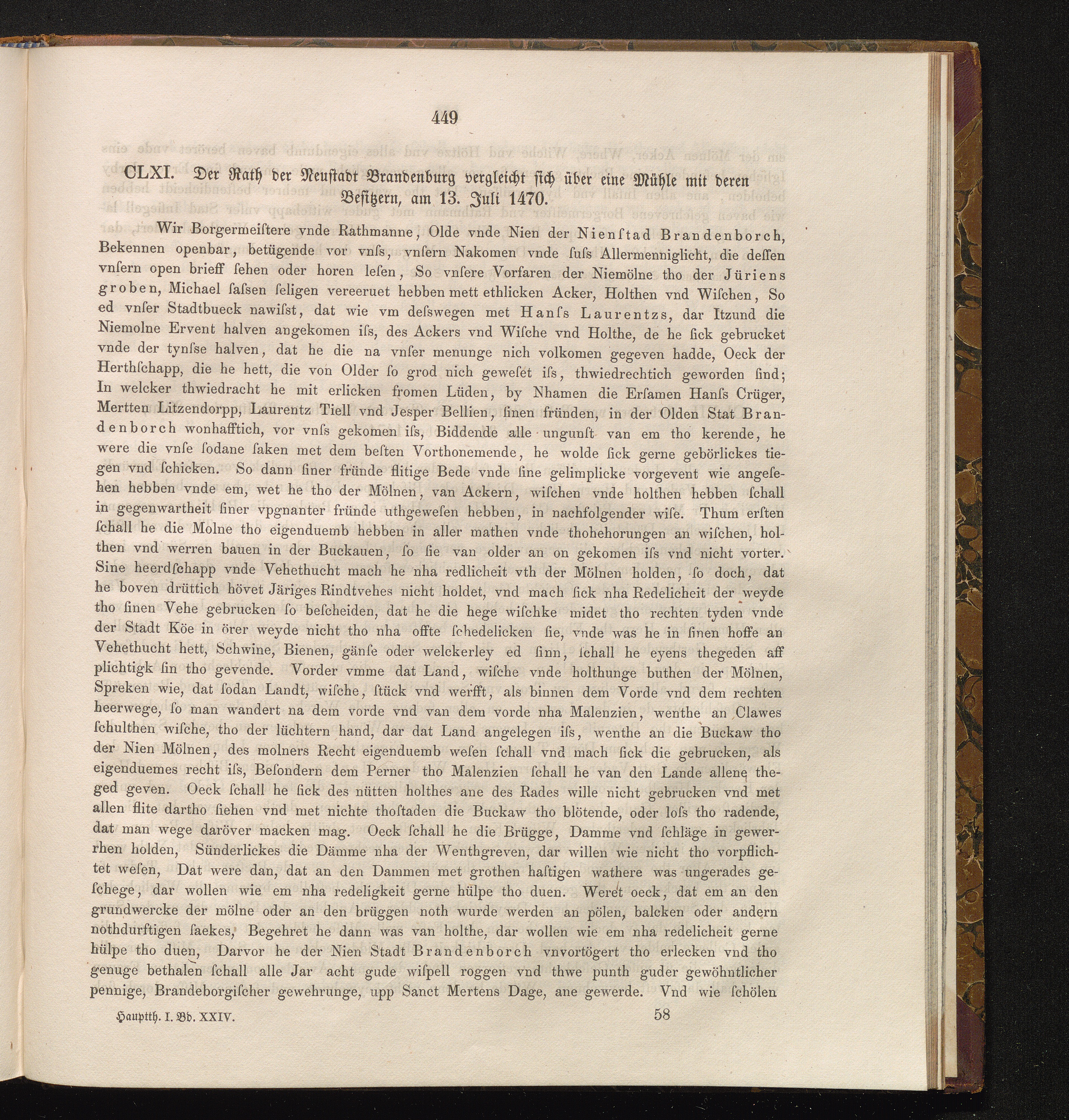CLXI. Der Rath der Neustadt Brandenburg vergleicht sich über eine Mühle mit deren[...]