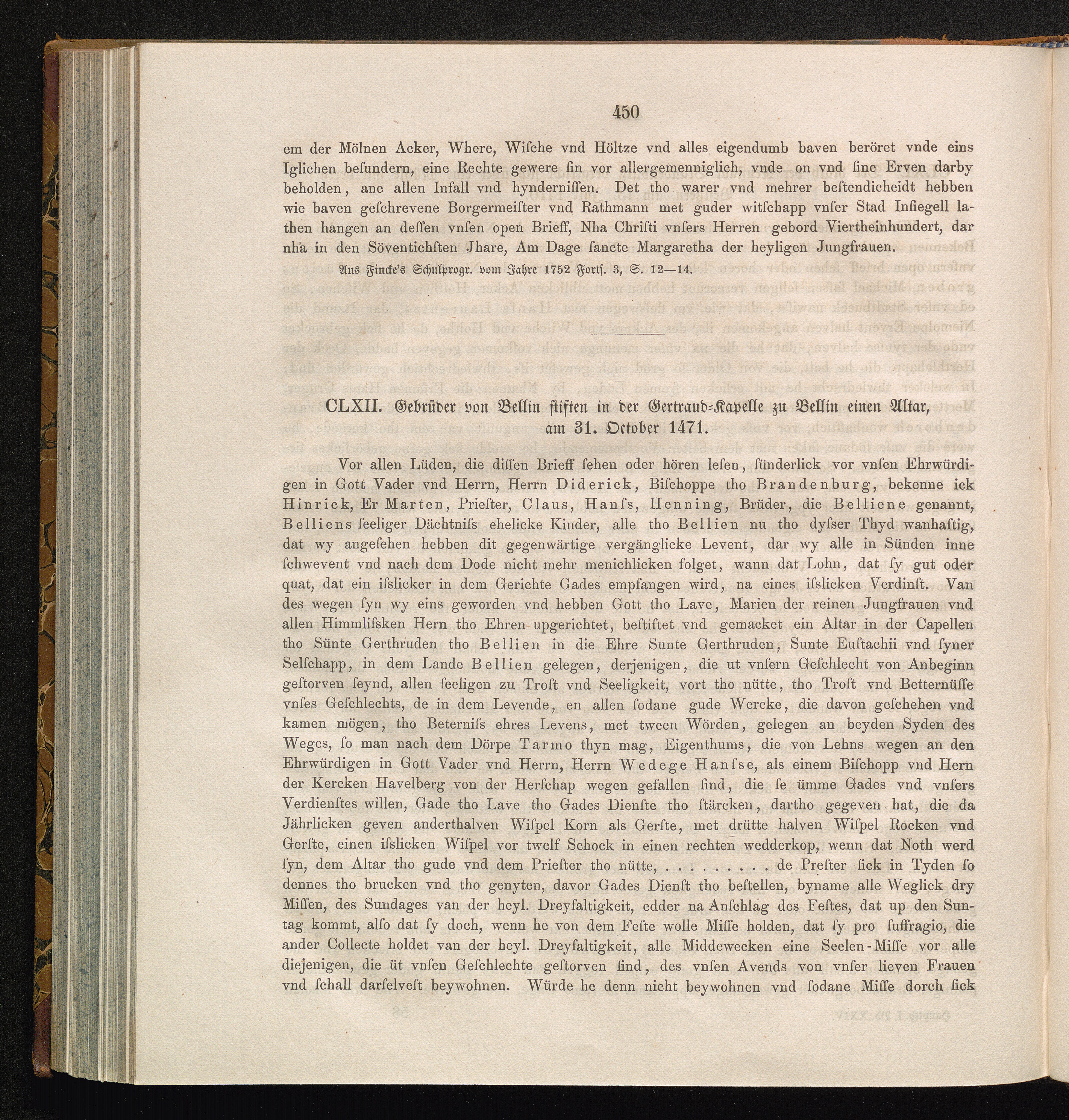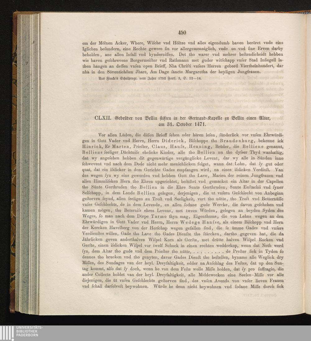CLXII. Gebrüder von Bellin stiften in der Gertraud-Kapelle zu Bellin einen Altar,[...]