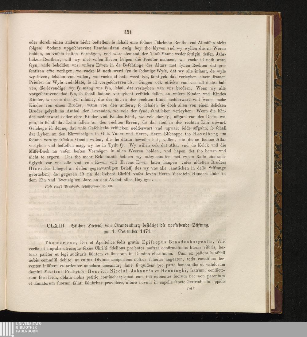 CLXIII. Bischof Dietrich von Brandenburg bestätigt die vorstehende Stiftung, am 1.[...]