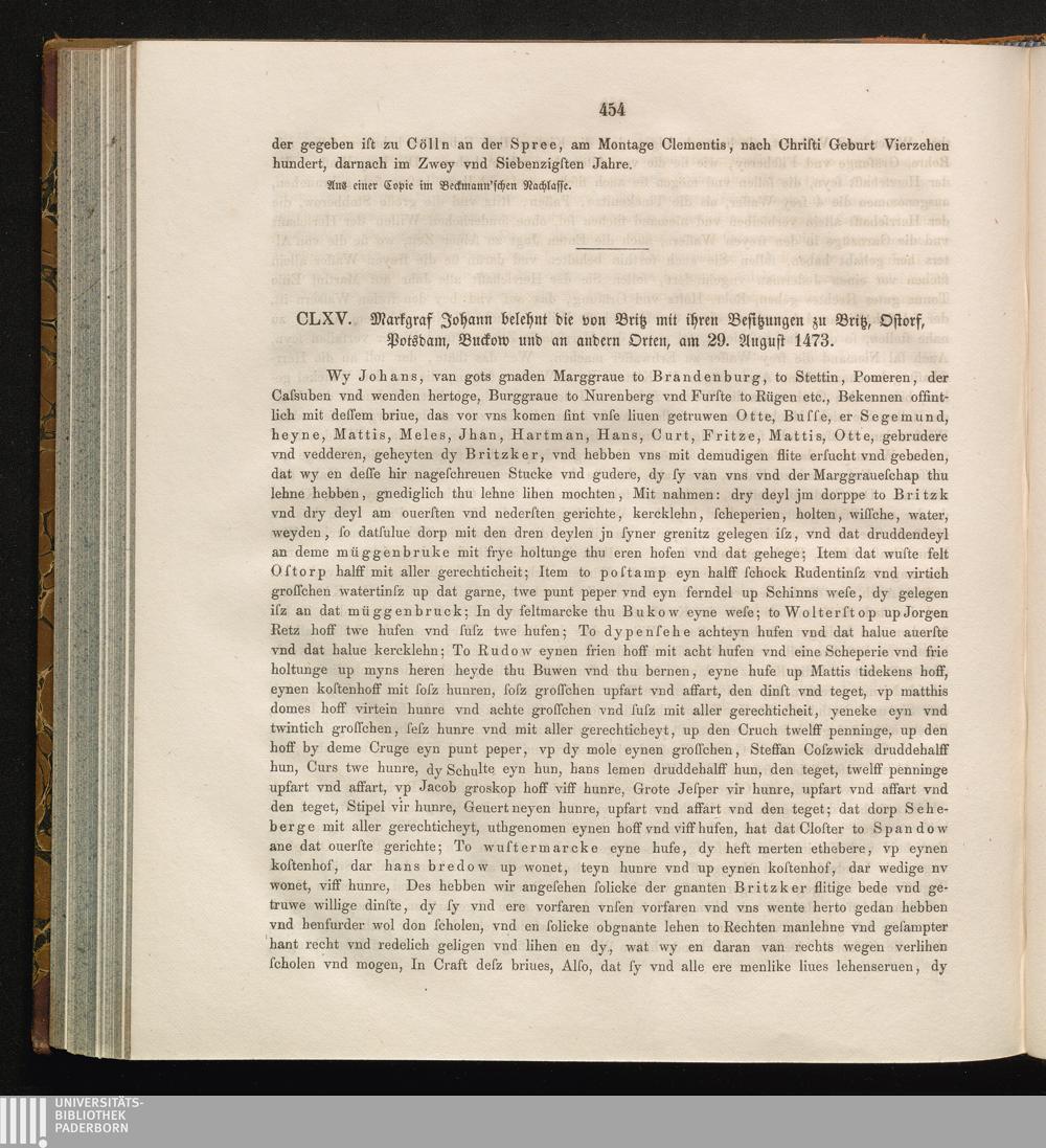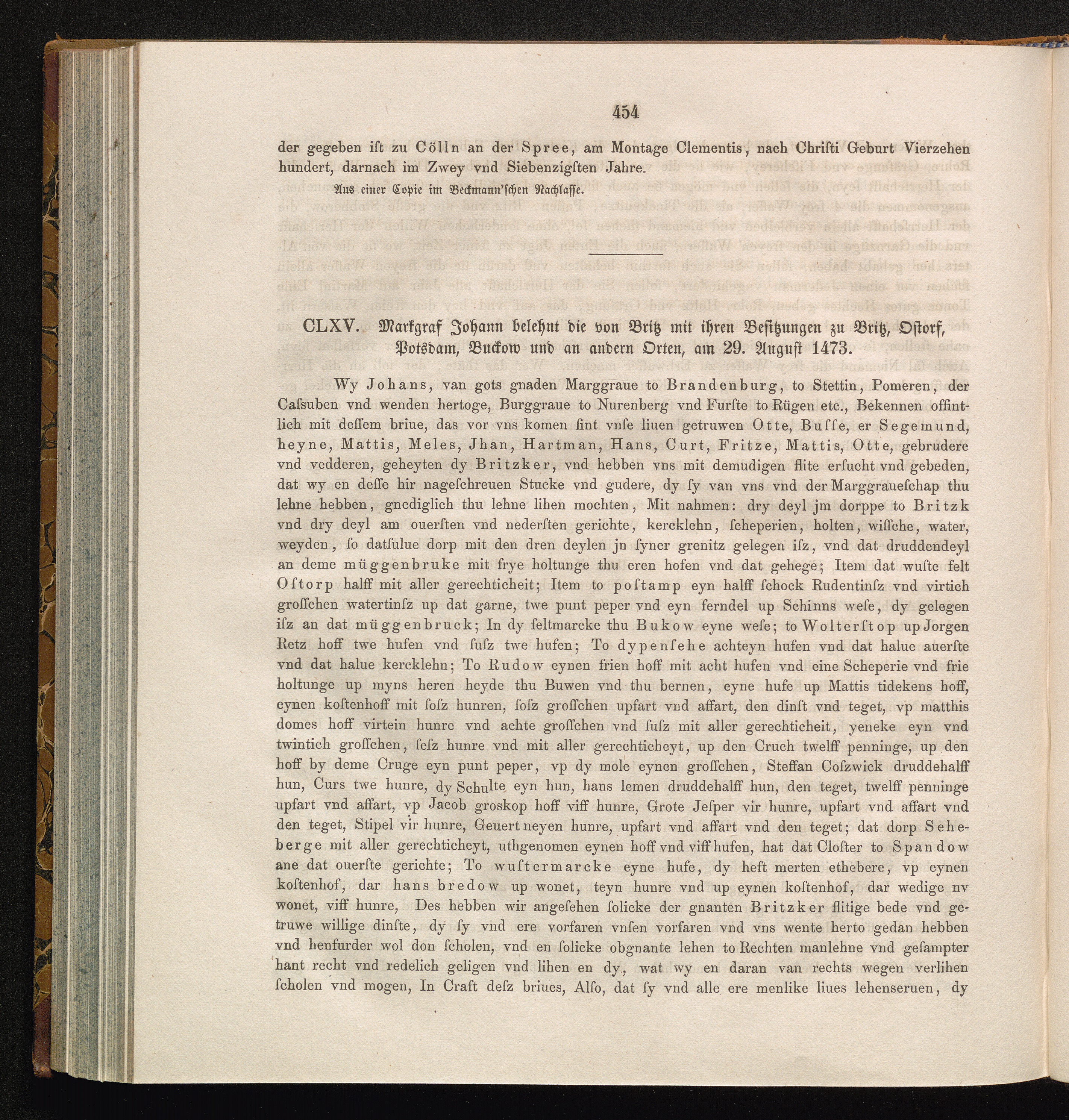 CLXV. Markgraf Johann belehnt die von Britz mit ihren Besitzungen zu Britz, Ostorf,[...]