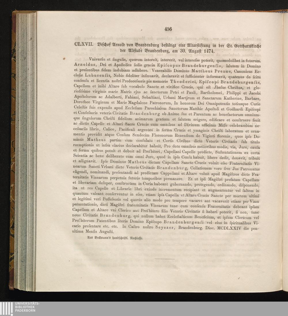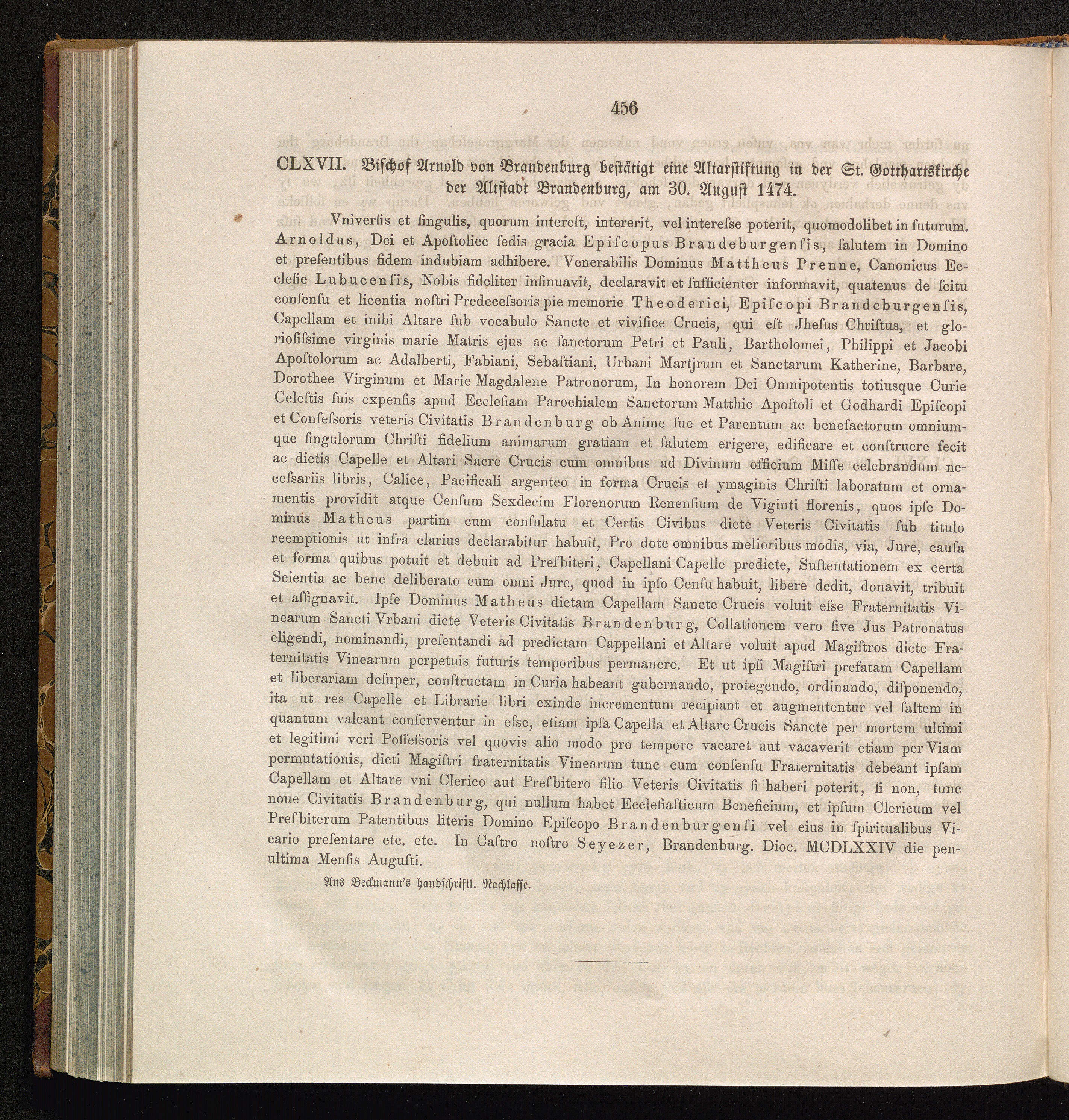 CLXVII. Bischof Arnold von Brandenburg bestätigt eien Altarstiftung in der St. Gotthardskirche[...]