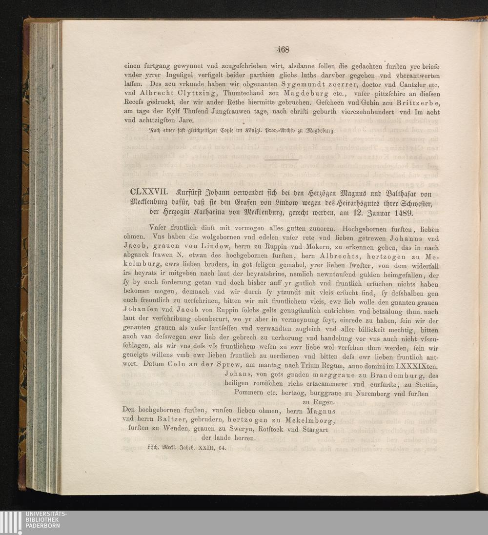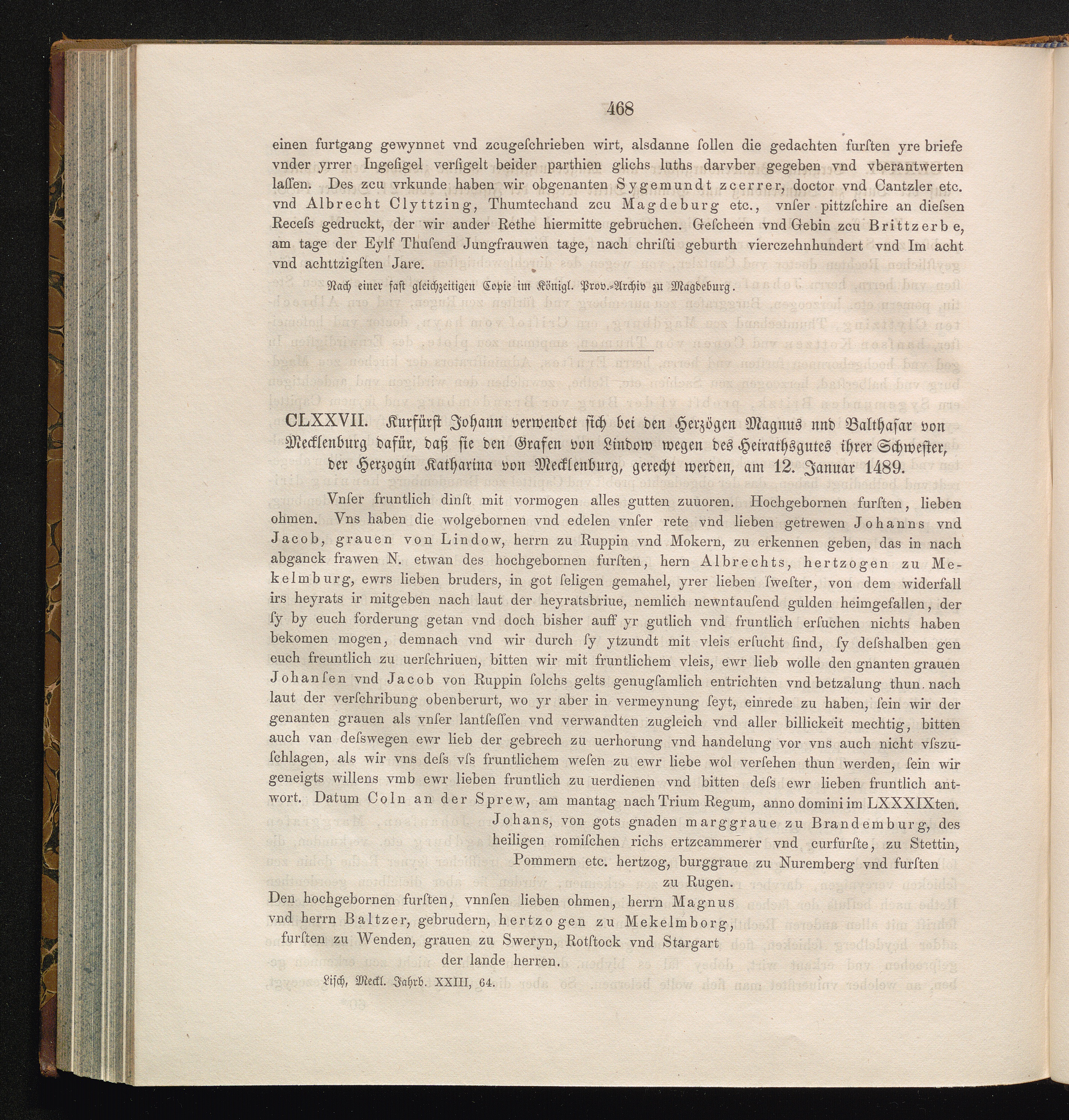 CLXXVII. Kurfürst Johann verwendet sich bei den Herzögen Magnus und Balthasar von[...]