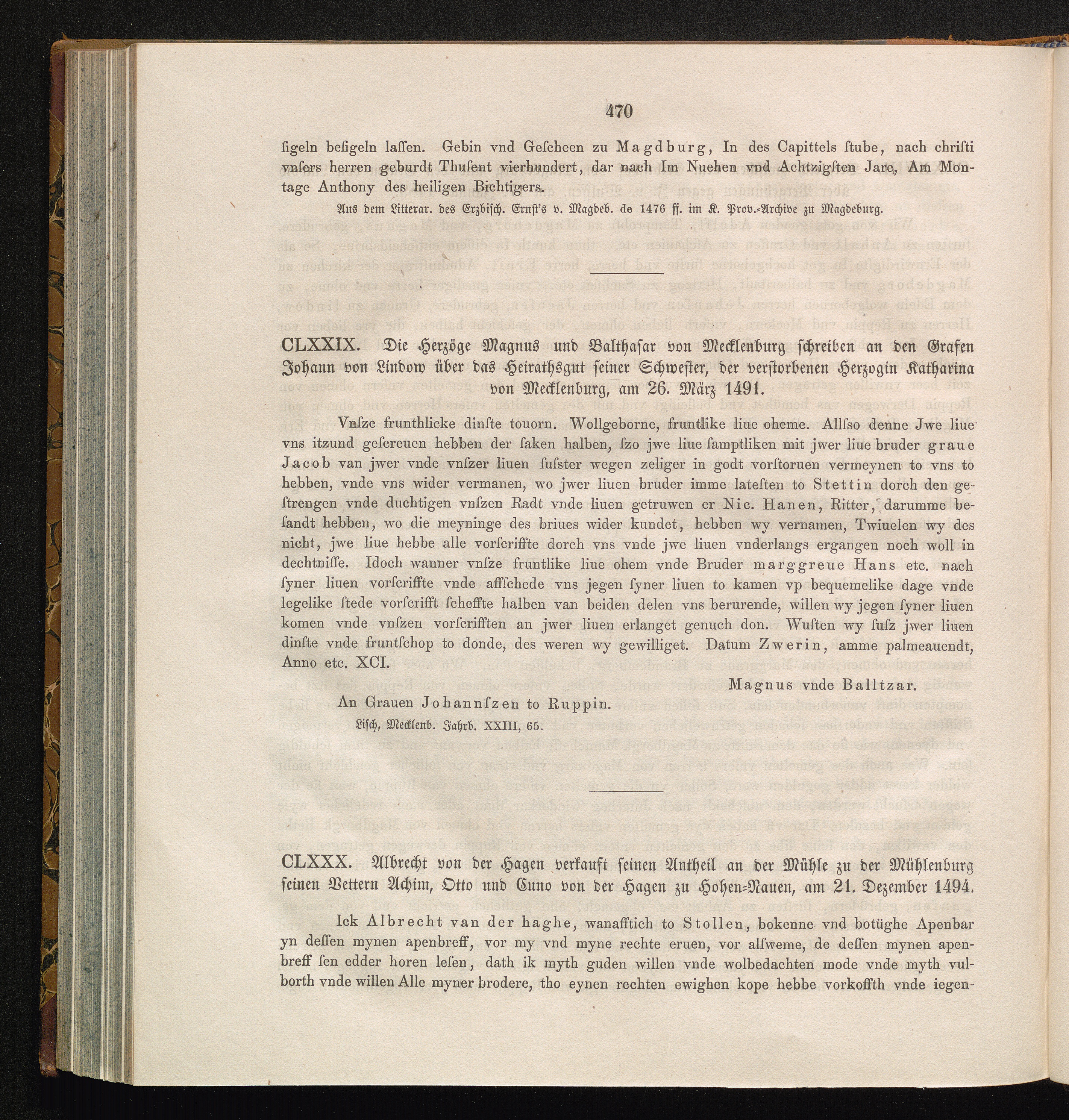 CLXXX. Albrecht von der Hagen verkauft seinen Antheil an der Mühle zu der Mühlenburg[...]