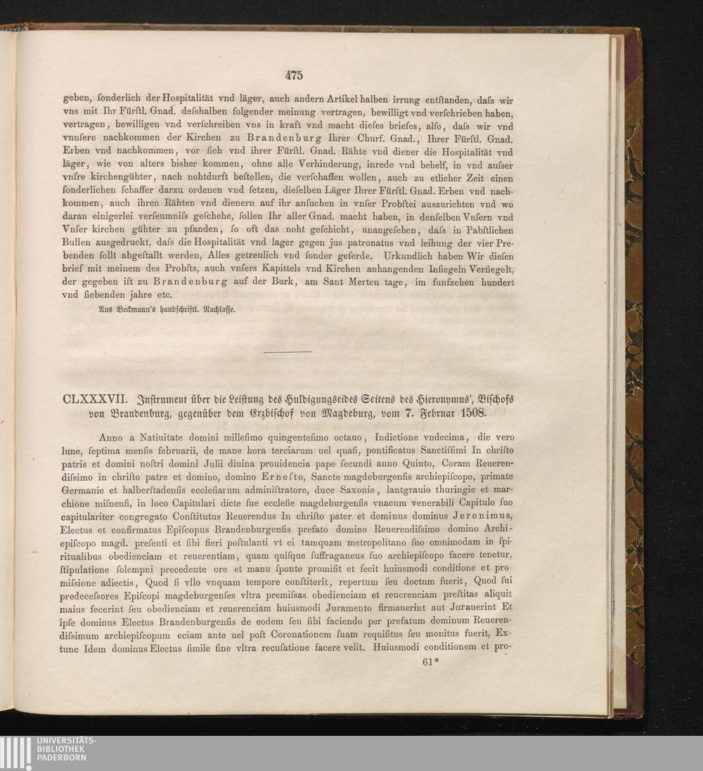 CLXXXVII. Jnstrument über die Leistung des Huldigungseides des Hieronymus', Bischofs[...]