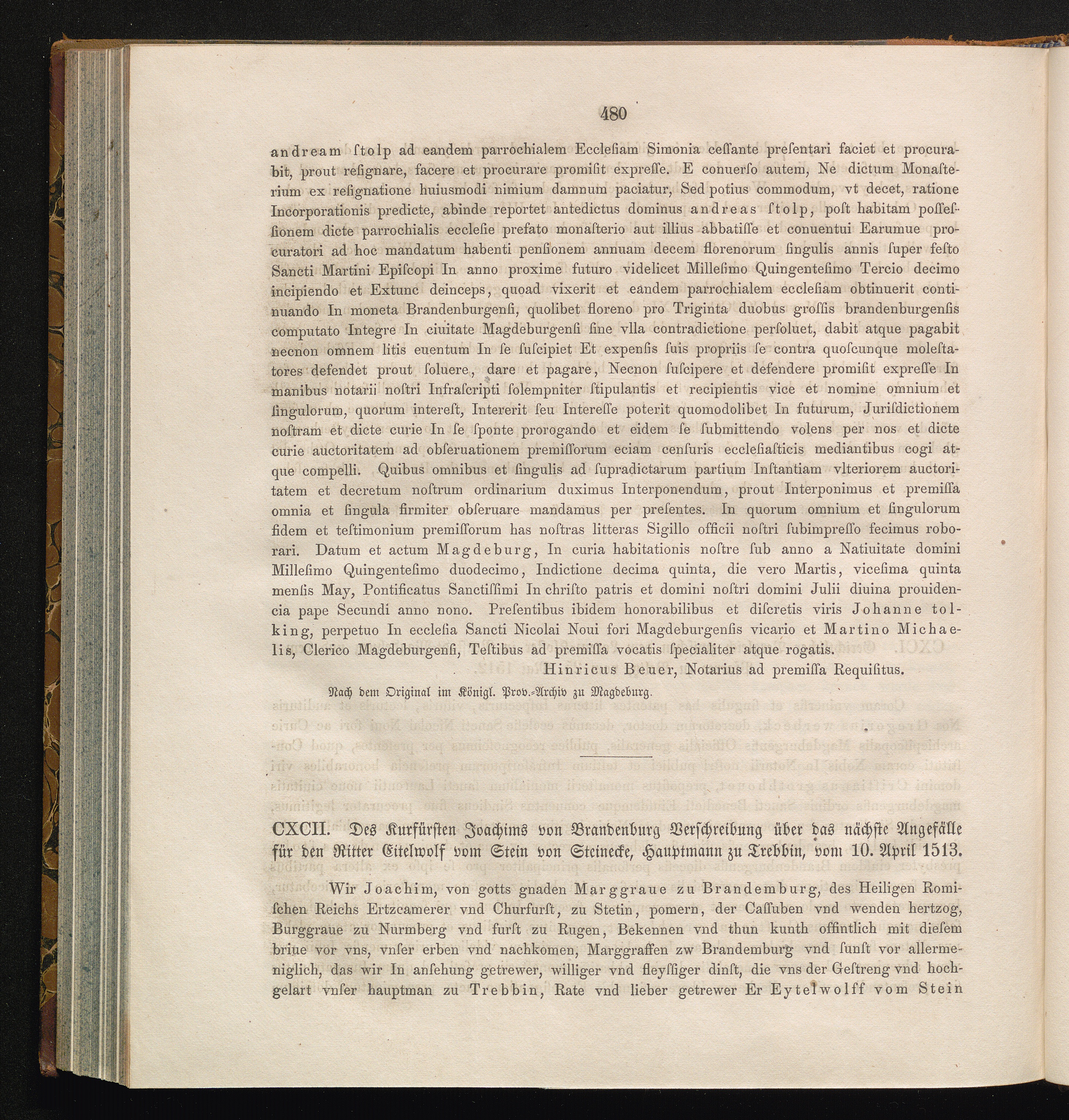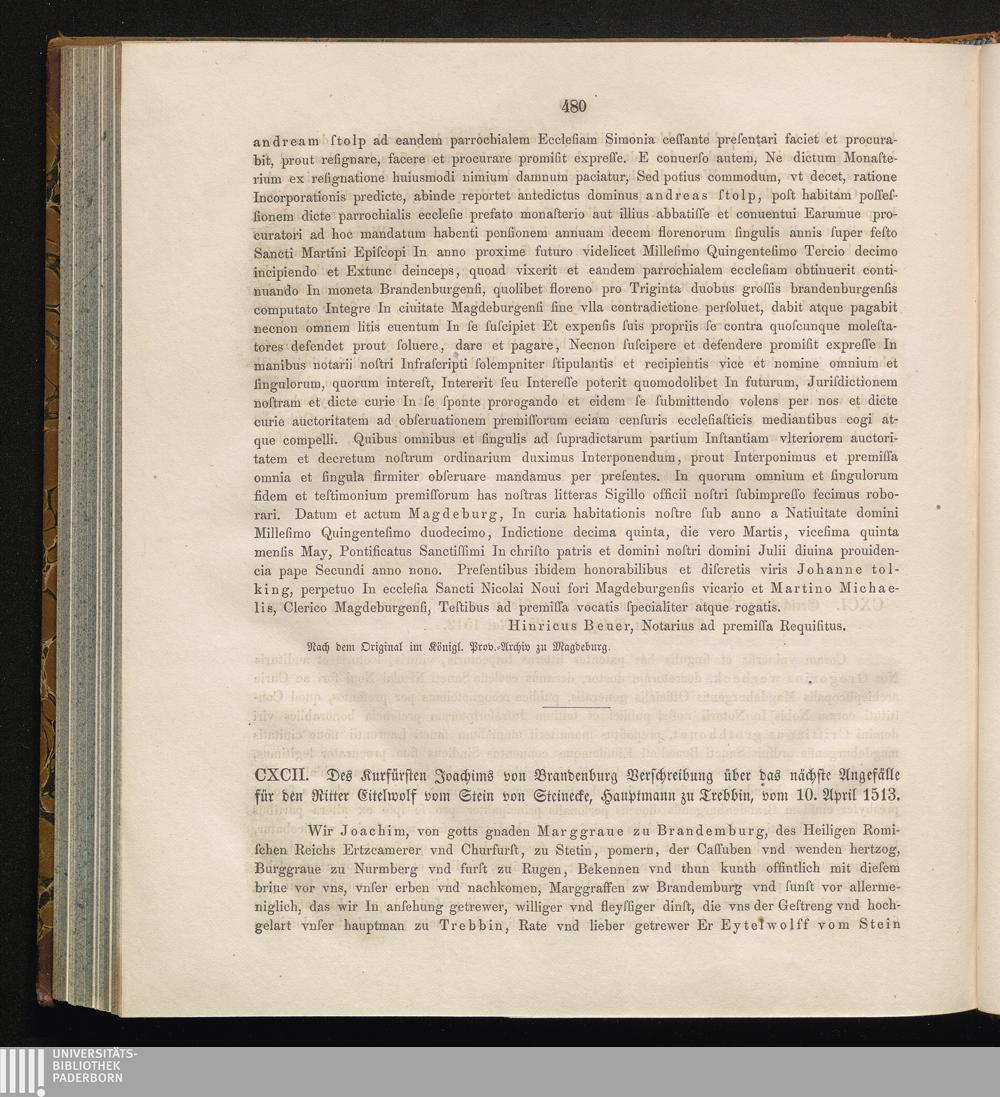CXCII. Des Kurfürsten Joachims von Brandenburg Verschreibung über das Angefälle für[...]