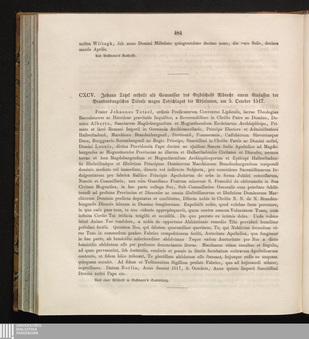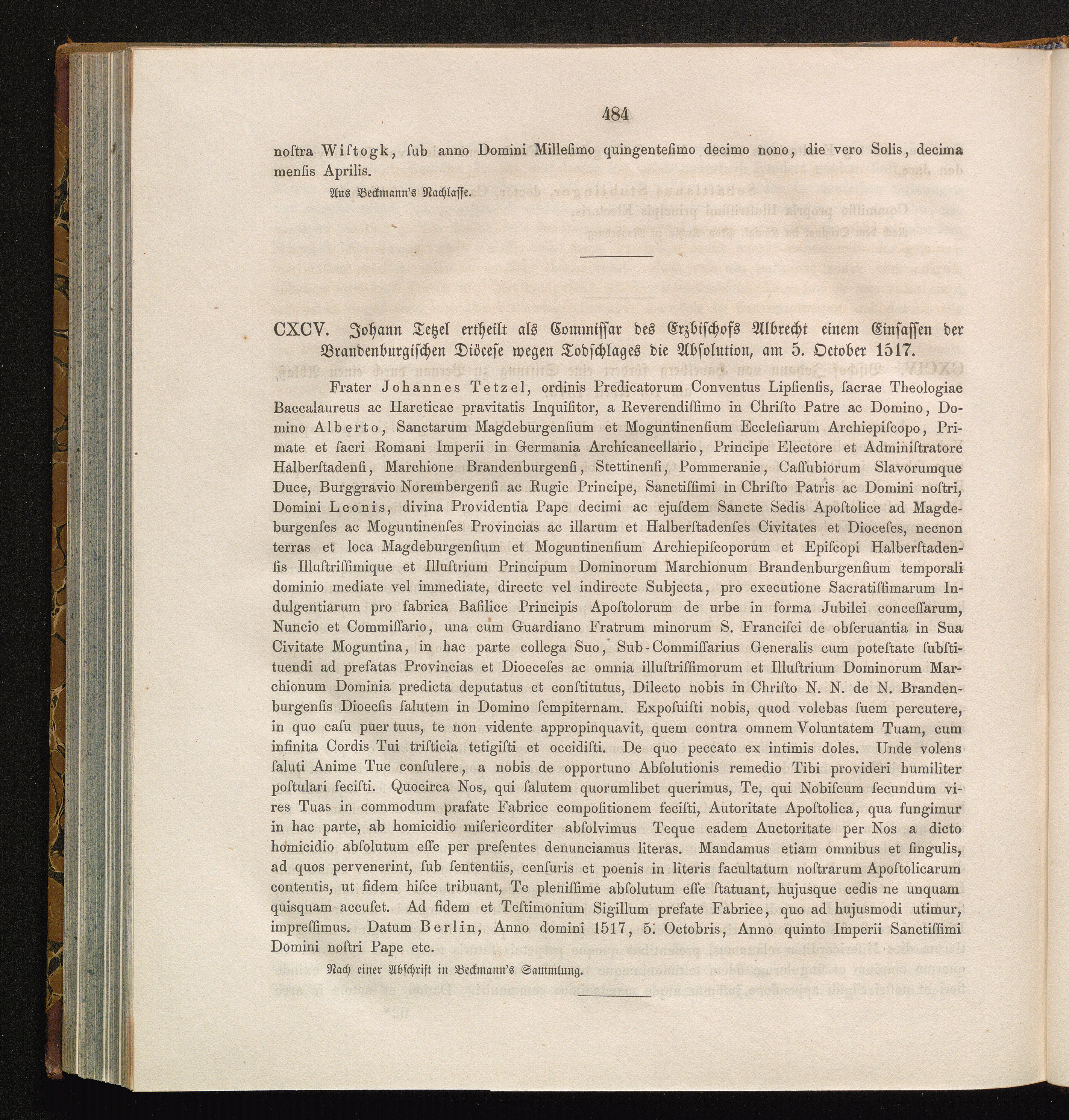 CXCV. Johann Tetzel ertheilt als Commissar des Erzbischofs Albrecht einem Einsassen[...]