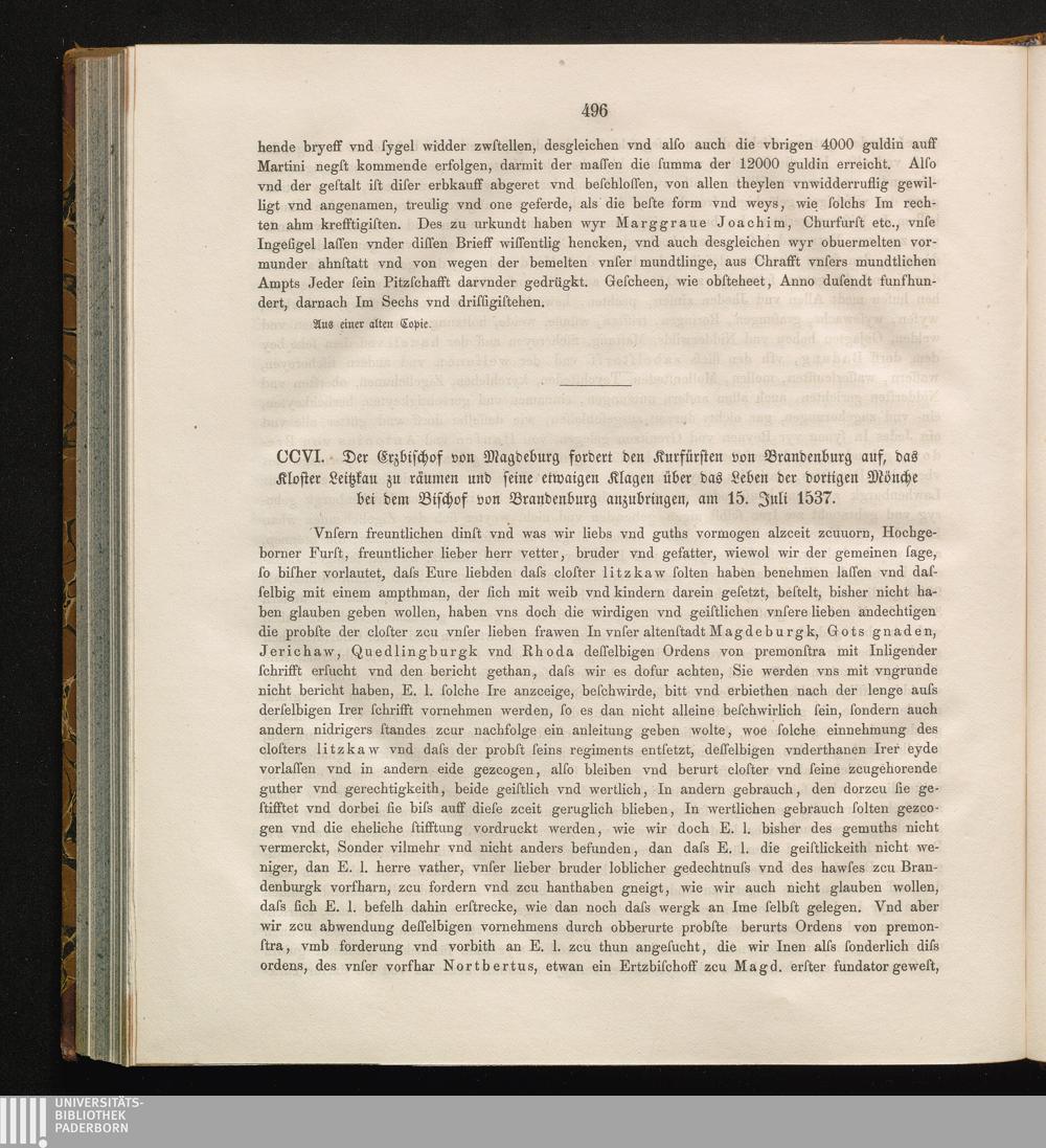 CCVI. Der Erzbischof von Magdeburg fordert den Kurfürsten von Brandenburg auf, das[...]