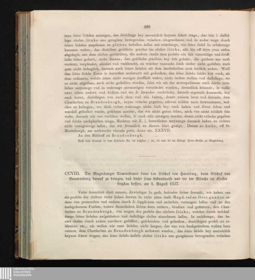 CCVIII. Der Magdeburger Administrator bittet den Bischof zu Havelburg, beim Bischof[...]