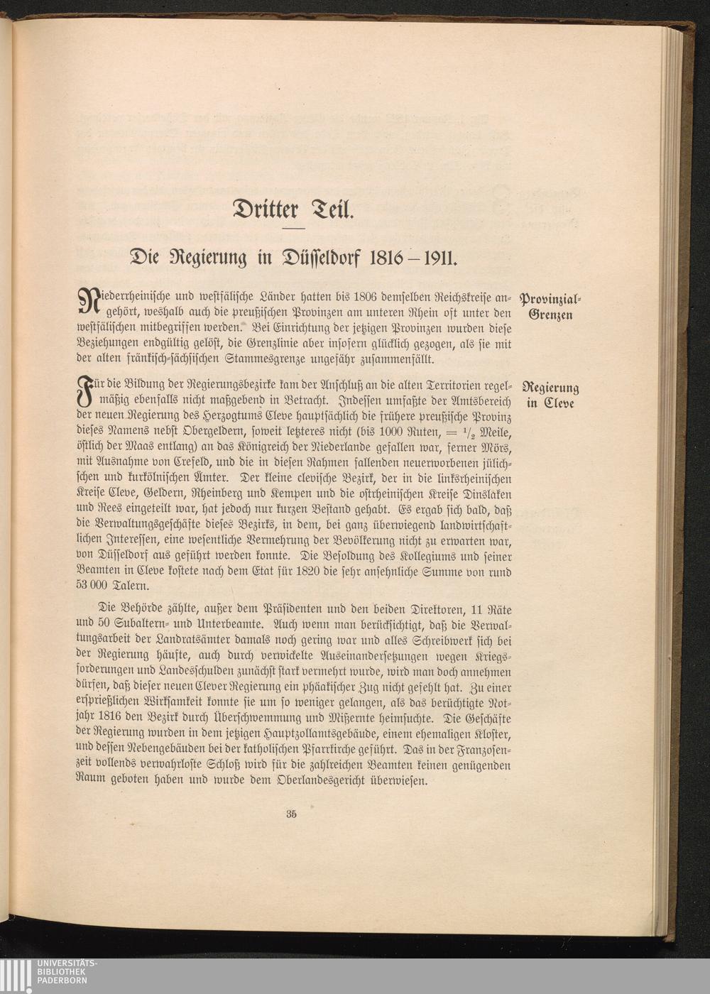 Zur Geschichte der Preußischen Verwaltung im Regierungsbezirk Düsseldorf / im amtlichen Auftrage zur Einweihung des neuen Regierungsgebäudes verfaßt von Regierungsrat Dr. Bammel. Mit einer Beschreibung des Neubaus von Regierungs- u. Baurat v. Saltzwedel