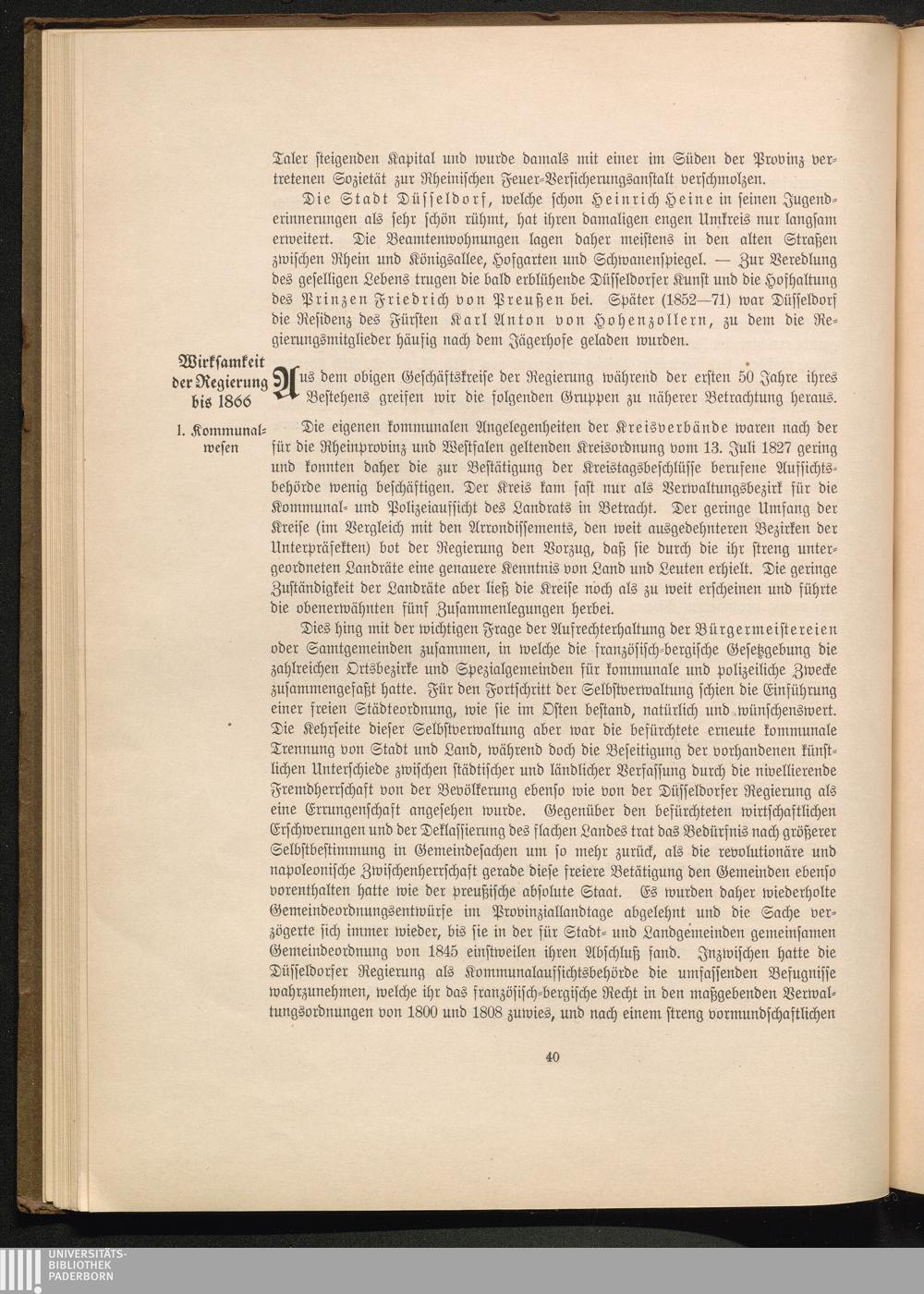 Zur Geschichte der Preußischen Verwaltung im Regierungsbezirk Düsseldorf / im amtlichen Auftrage zur Einweihung des neuen Regierungsgebäudes verfaßt von Regierungsrat Dr. Bammel. Mit einer Beschreibung des Neubaus von Regierungs- u. Baurat v. Saltzwedel