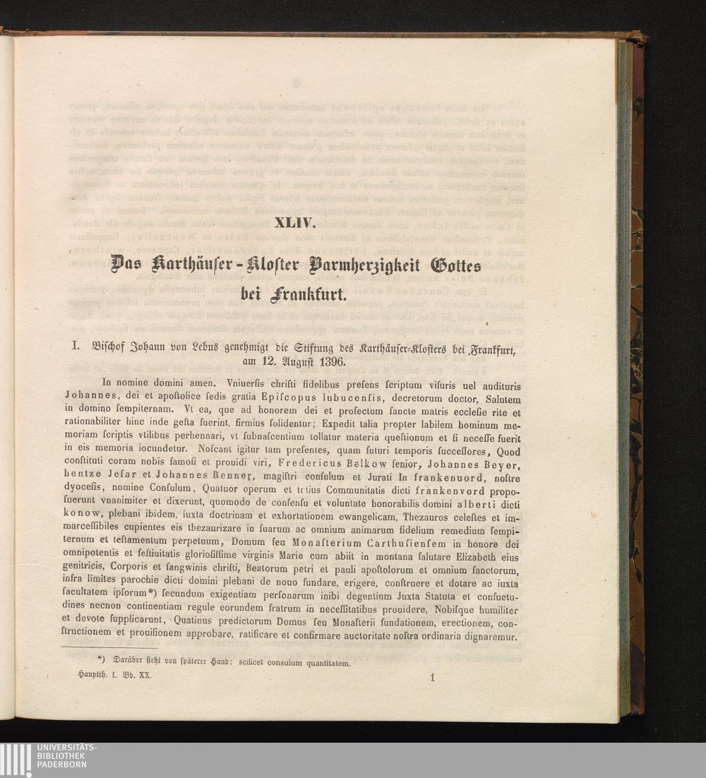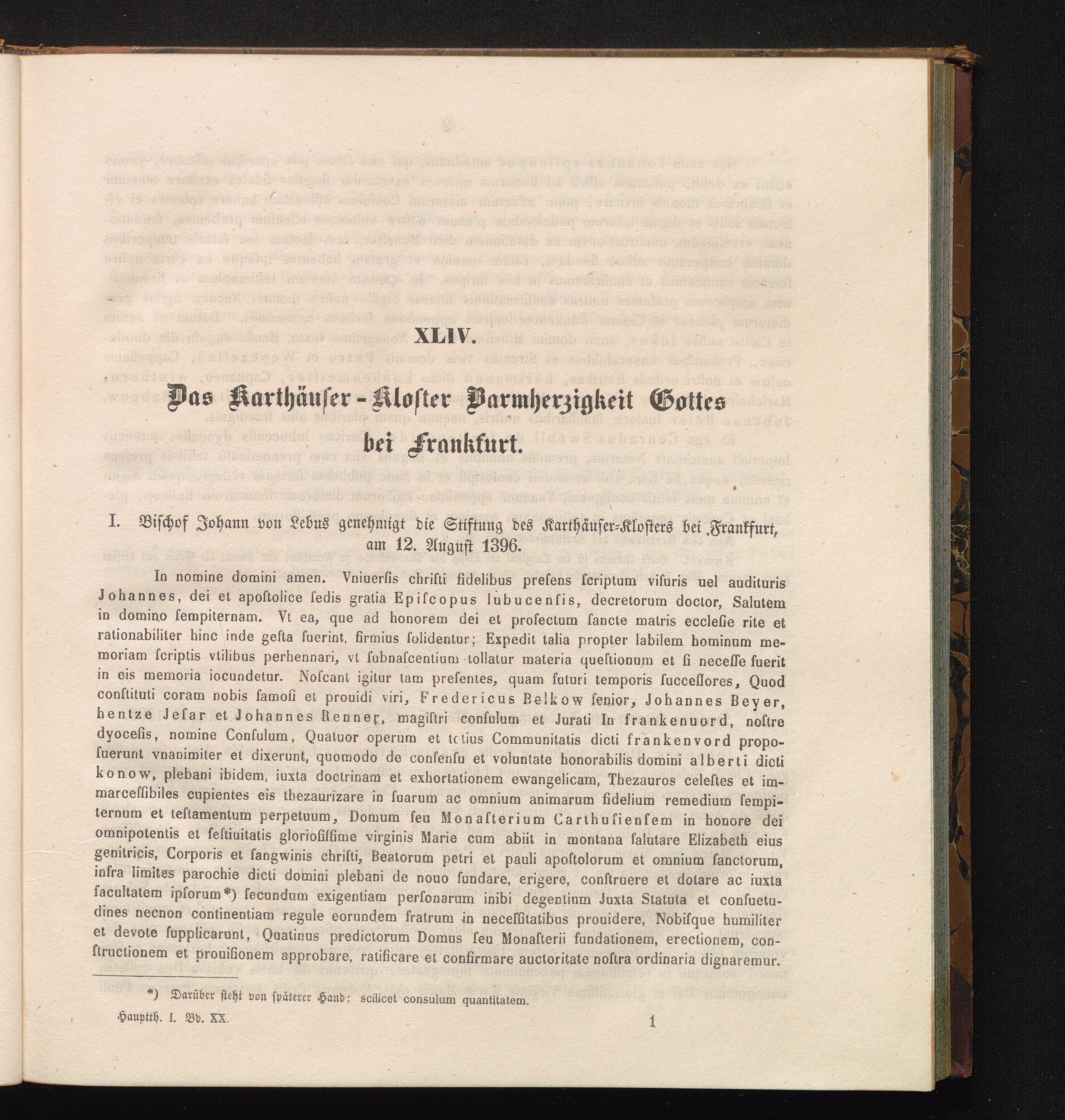 I. Bischof Johann von Lebus genehmigt die Stiftung des Karthäuser-Klosters bei Frankfurt,[...]