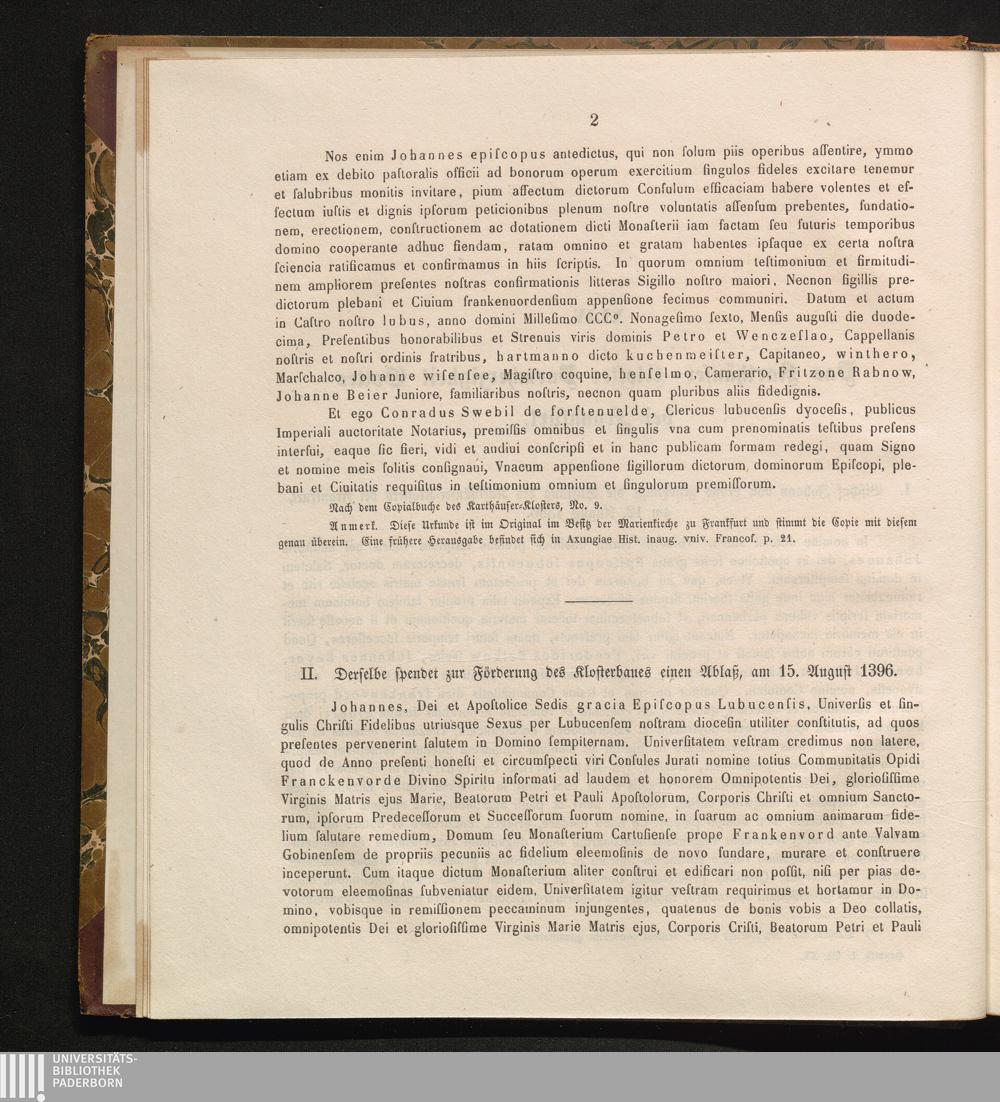 II. Derselbe spendet zur Förderung des Klosterbaues einen Ablaß, am 15. August 1[...]