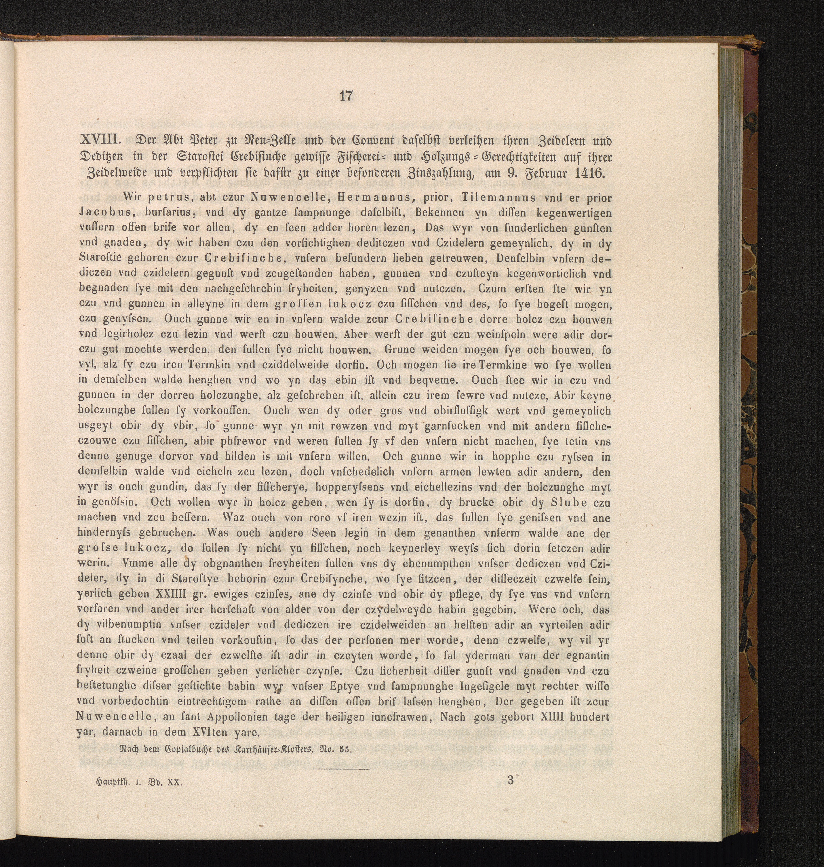 XVIII. Der Abt Peter zu Neu-Zelle und der Convent daselbst verleihen ihren Zeidelern[...]