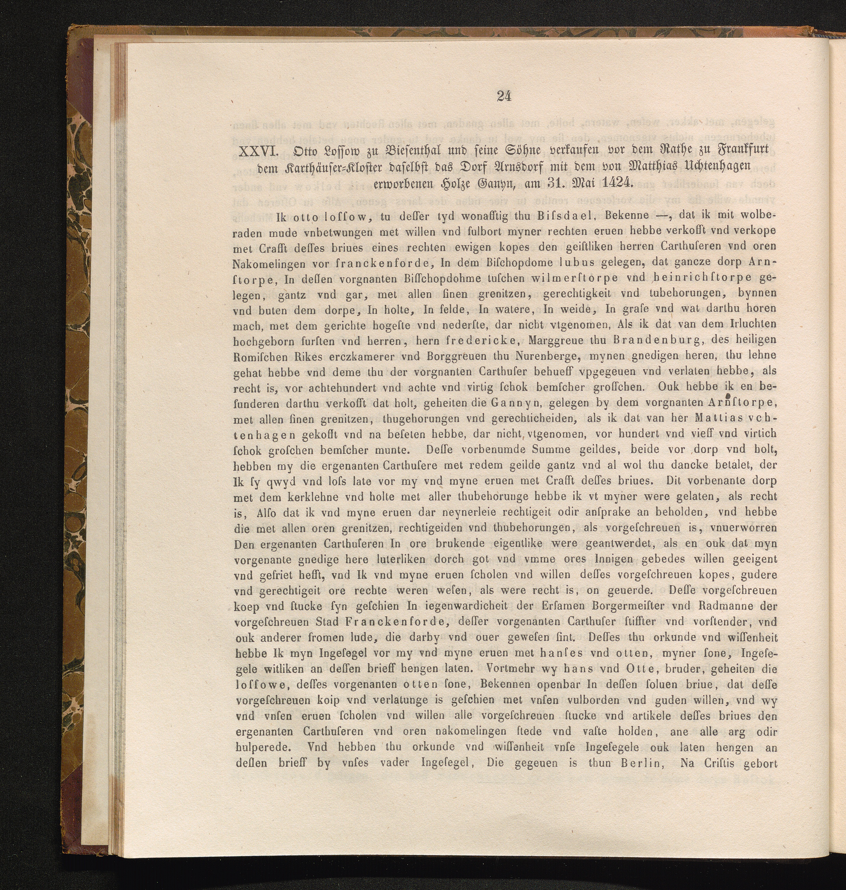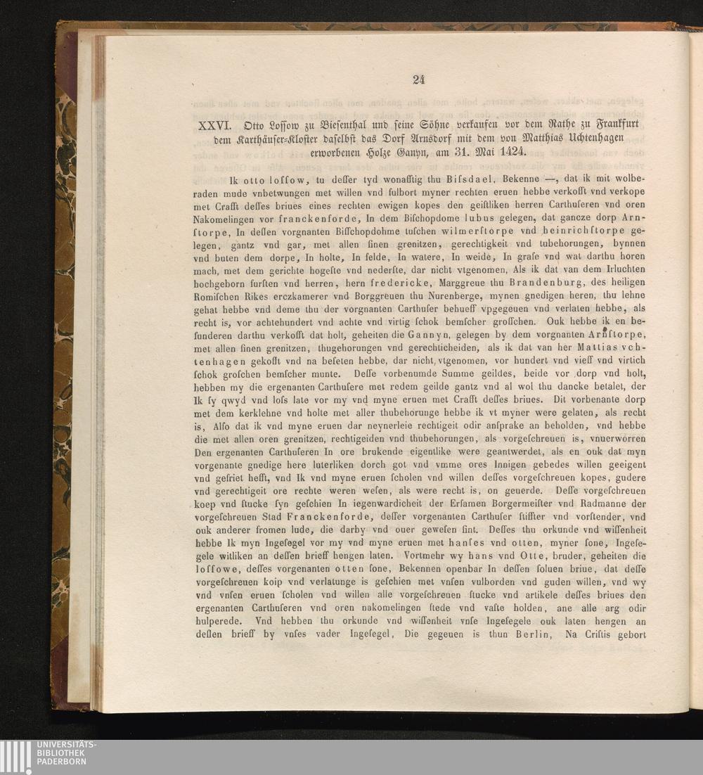 XXVI. Otto Lossow zu Biesenthal und seine Söhne verkaufen vor dem Rathe zu Frankfurt[...]