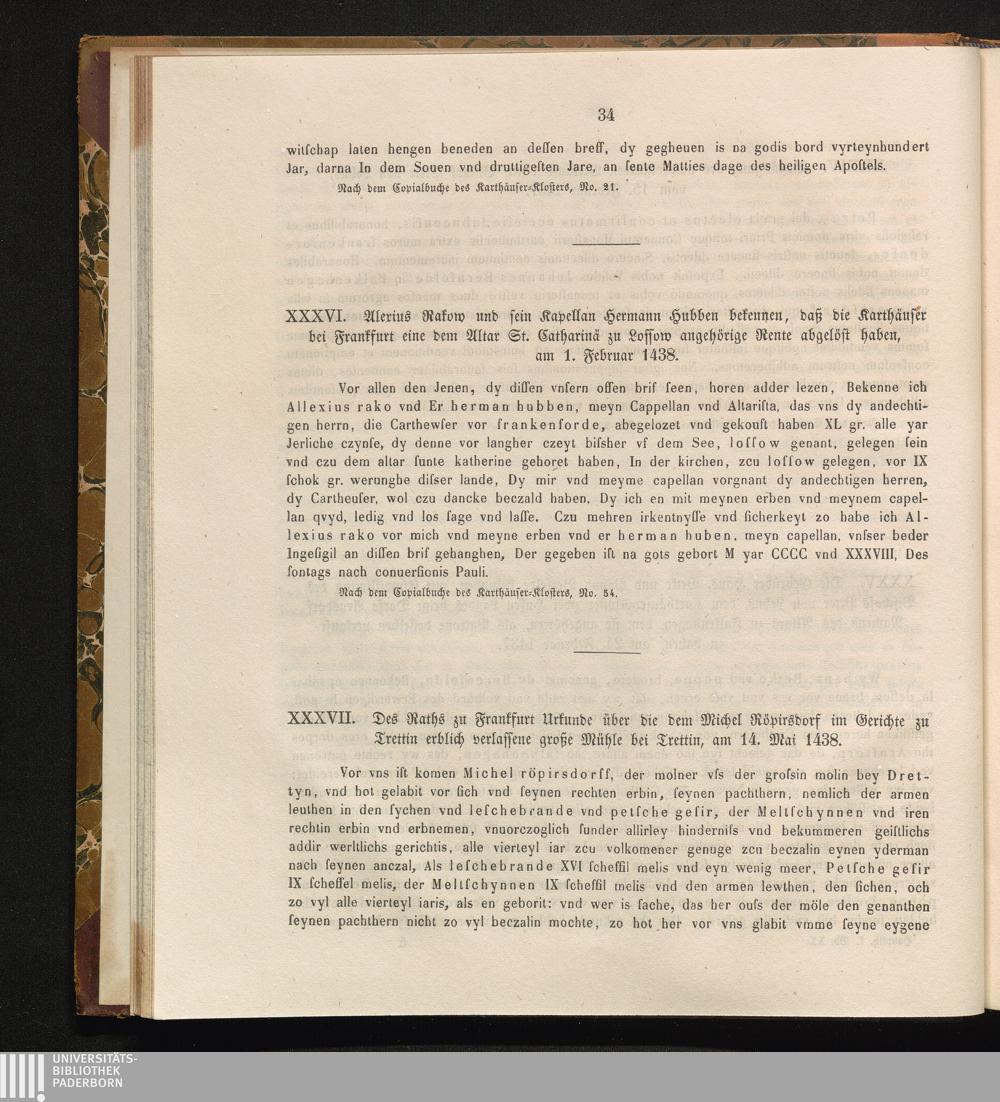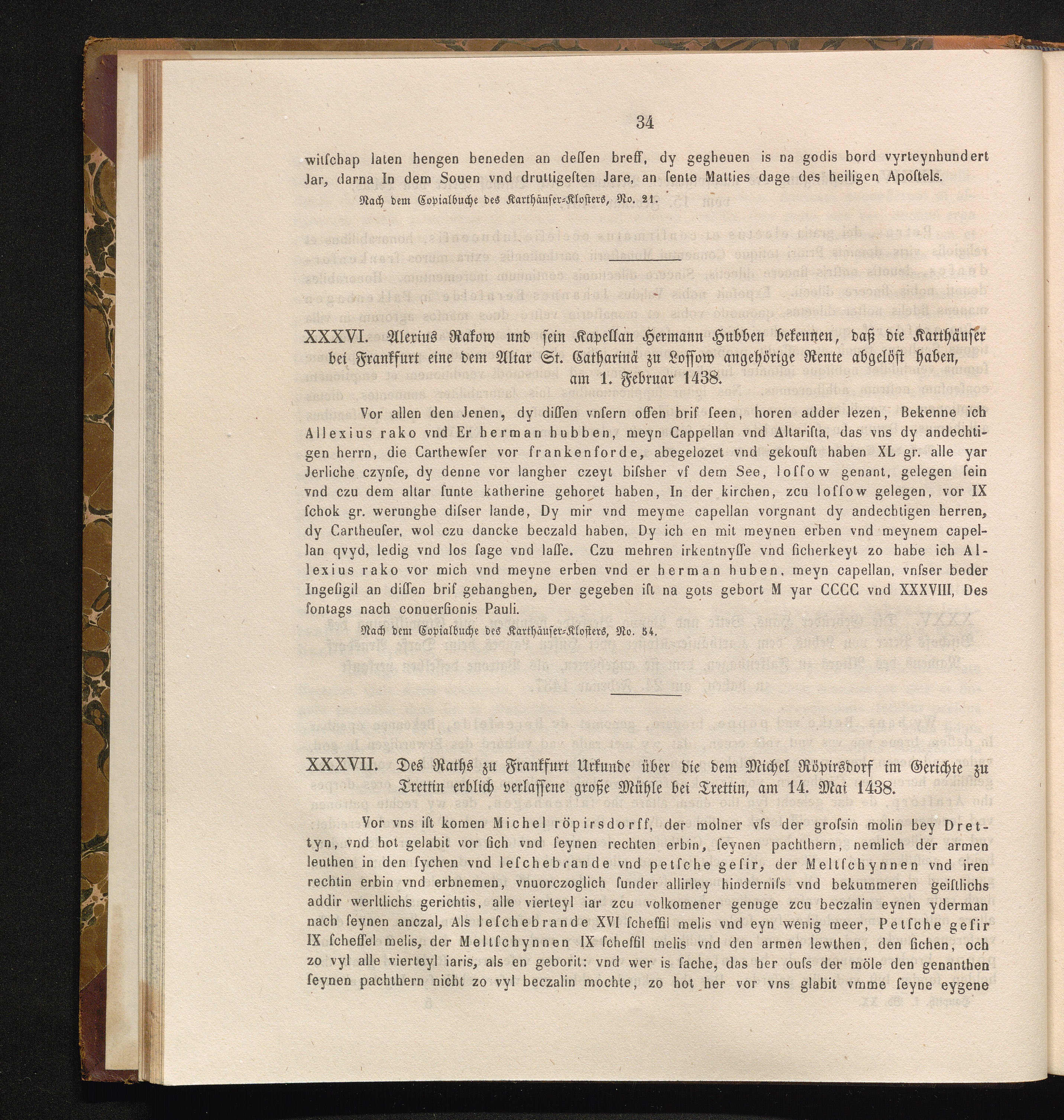 XXXVII. Des Raths zu Frankfurt Urkunde über die dem Michel Röpirsdorf im Gerichte[...]