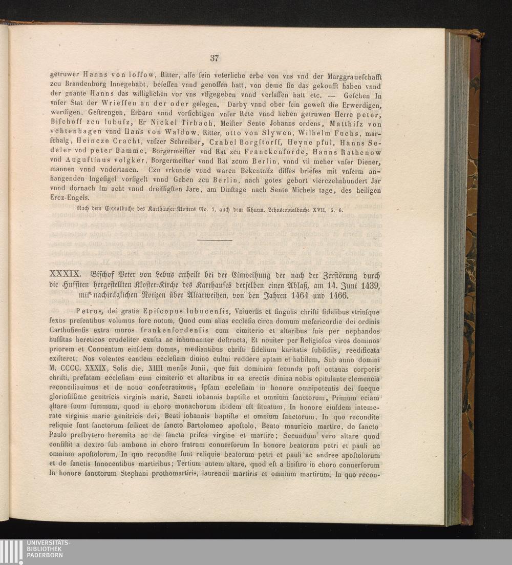 XXXIX. Bischof Peter von Lebus ertheilt bei der Einweihung der nach der Zerstörung[...]