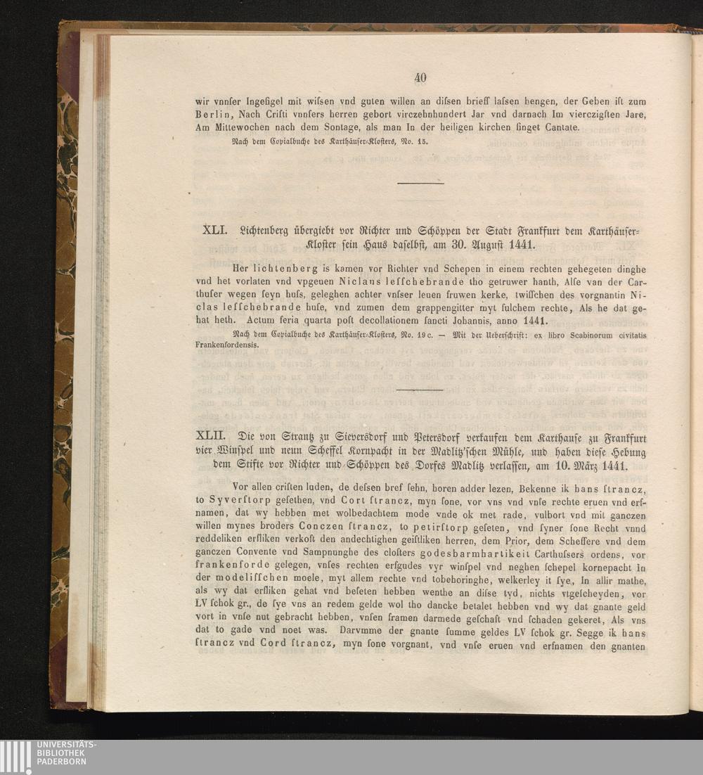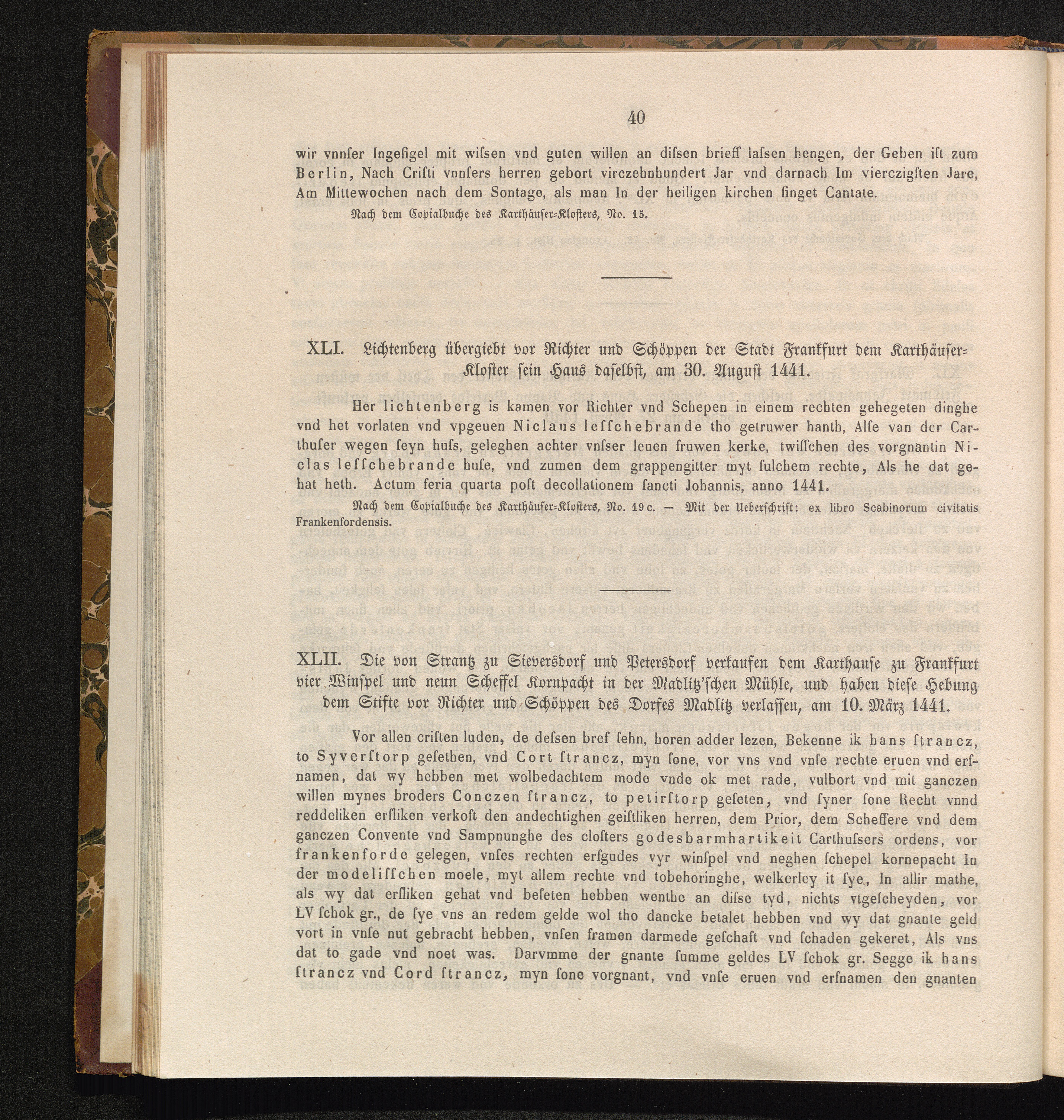 XLII. Die von Strantz zu Sieversdorf und Petersdorf verkaufen dem Karthause zu Frankfurt[...]