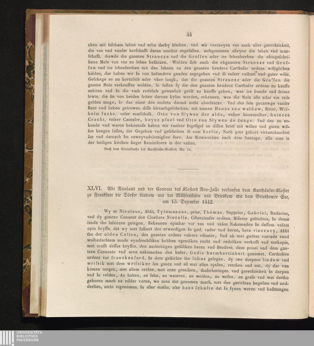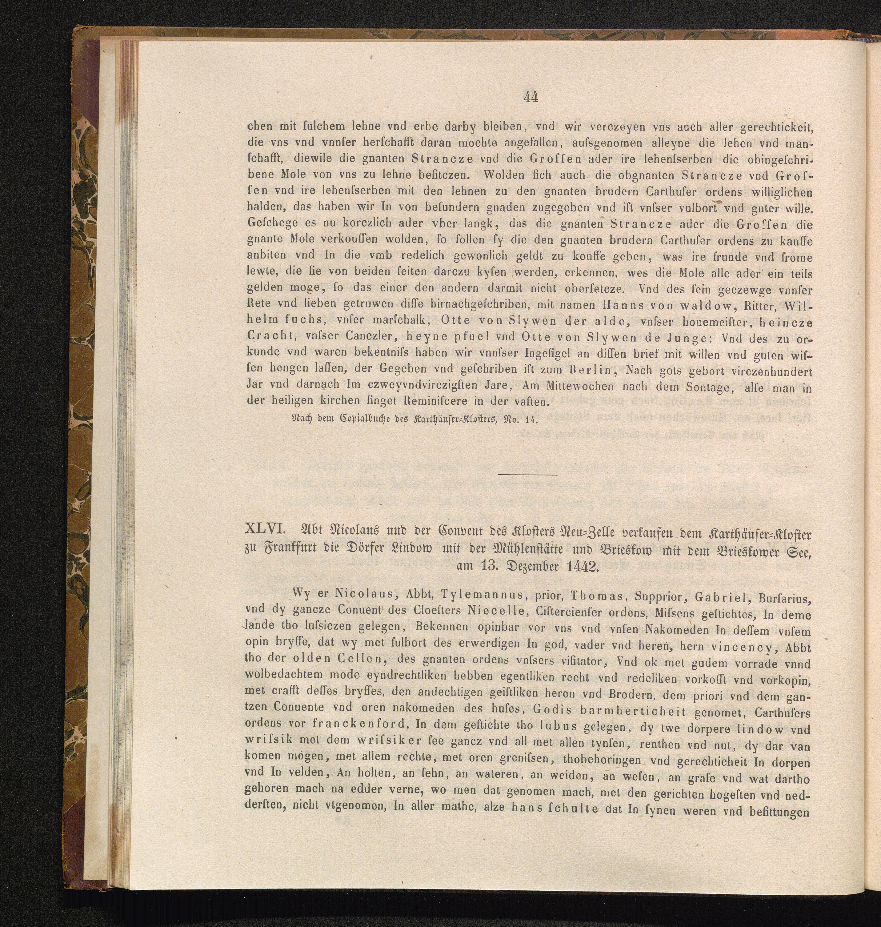 XLVI. Abt Nicolaus und der Convent des Klosters Neu-Zelle verkaufen dem Karthäuser-Kloster[...]