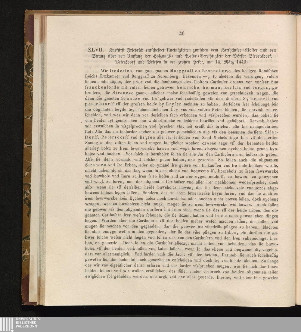 XLVII. Kurfürst Friedrich entscheidet Uneinigkeiten zwischen dem Karthäuser-Kloster[...]