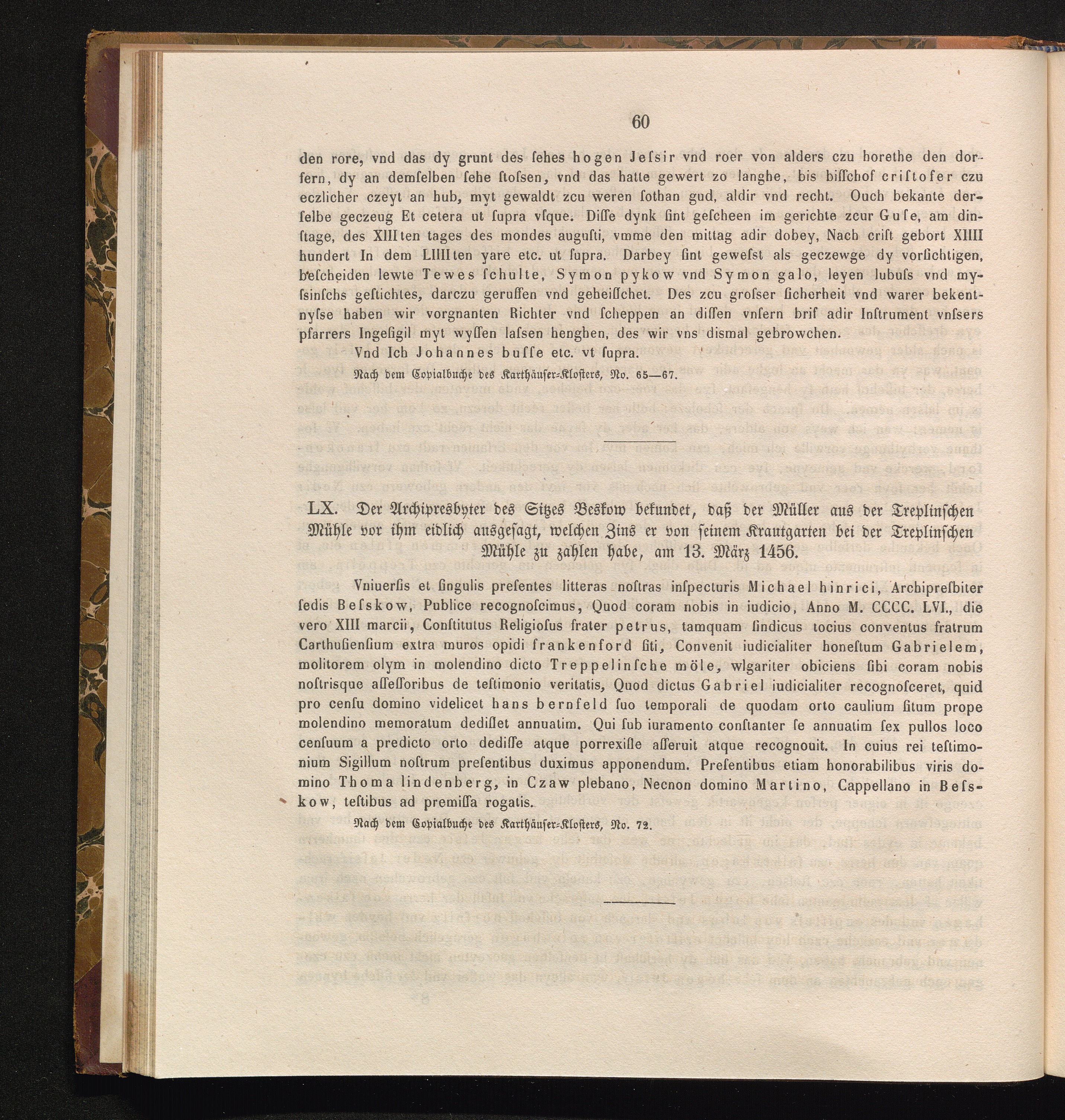 LX. Der Archipresbyter des Sitzes Beskow bekundet, daß der Müller und der Treplinschen[...]