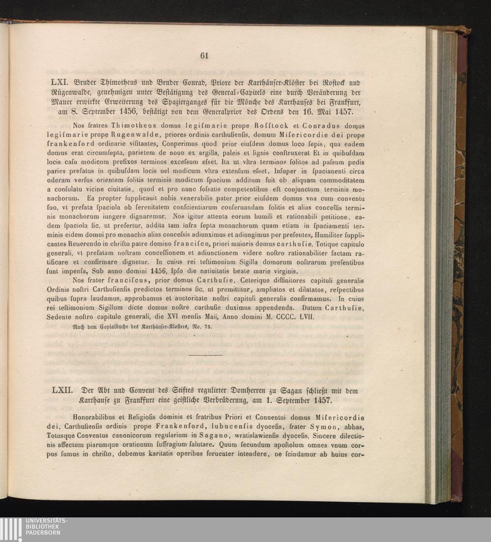 LXII. Der Abt und Convent des Stiftes regulirter Domherren zu Sagan schließt mit[...]