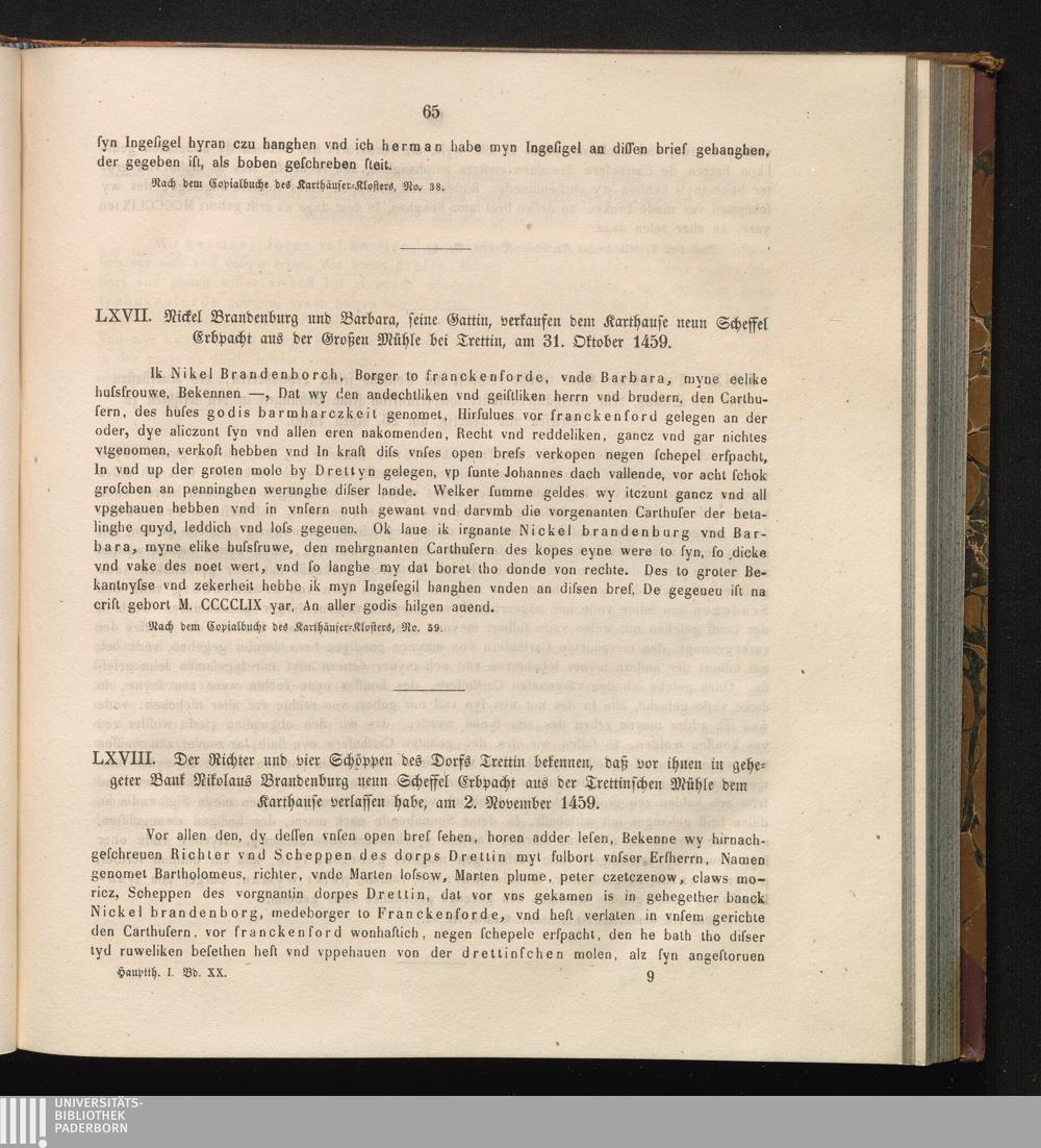 LXVIII. Der Richter und vier Schöppen des Dorfs Trettin bekennen, daß vor ihnen in[...]