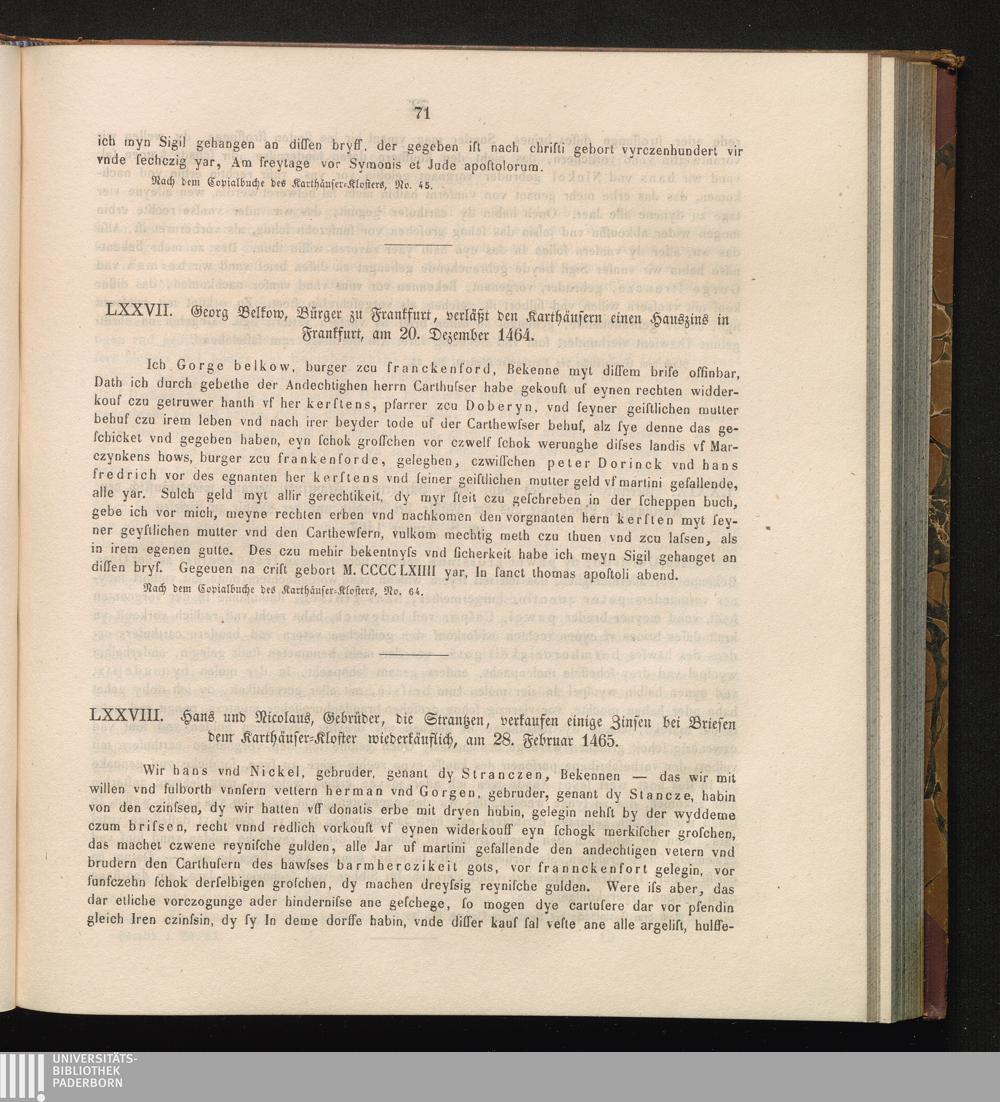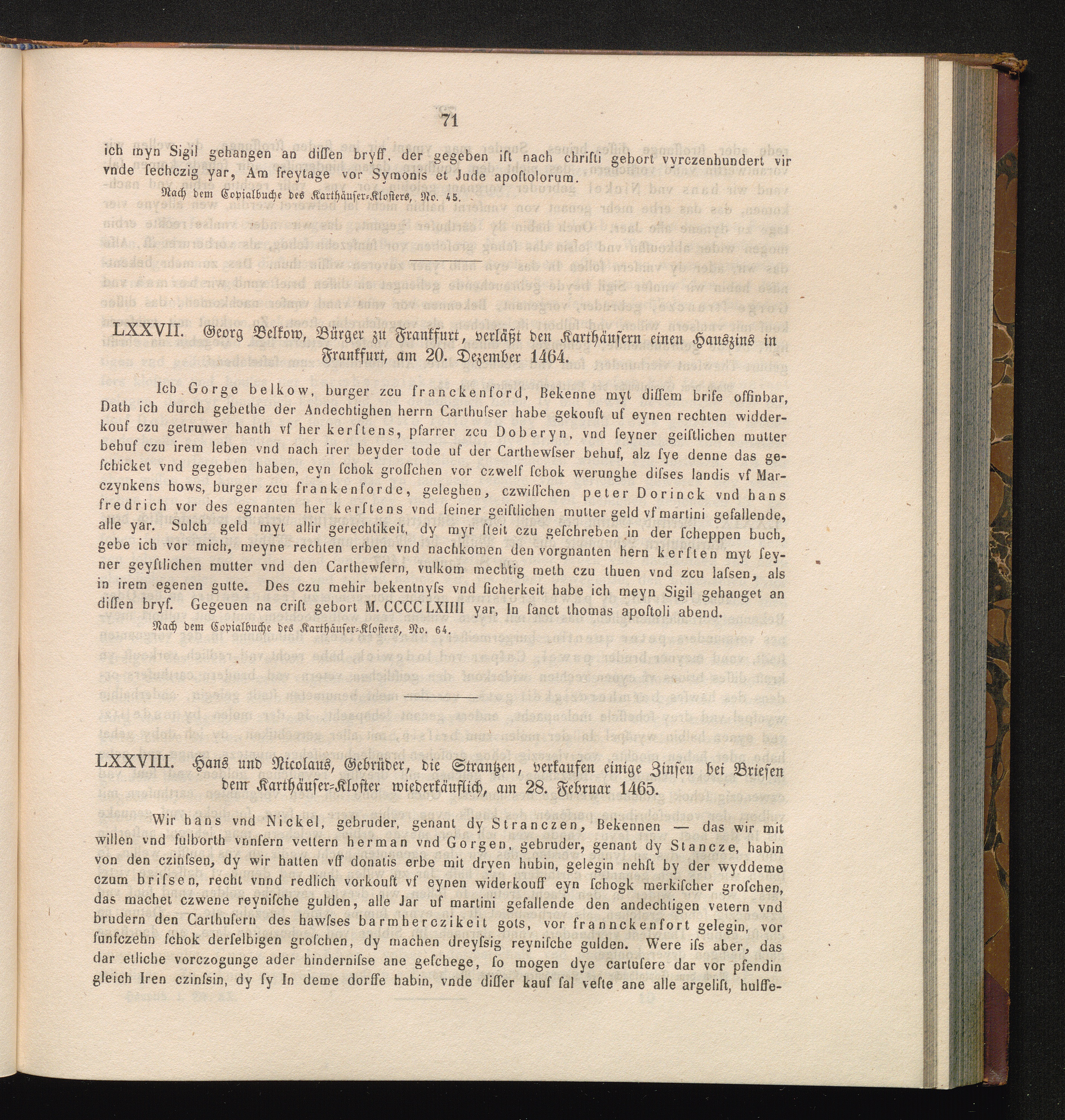 LXXVIII. Hans und Nicolaus, Gebrüder, die Strantzen, verkaufen einige Zinsen bei[...]