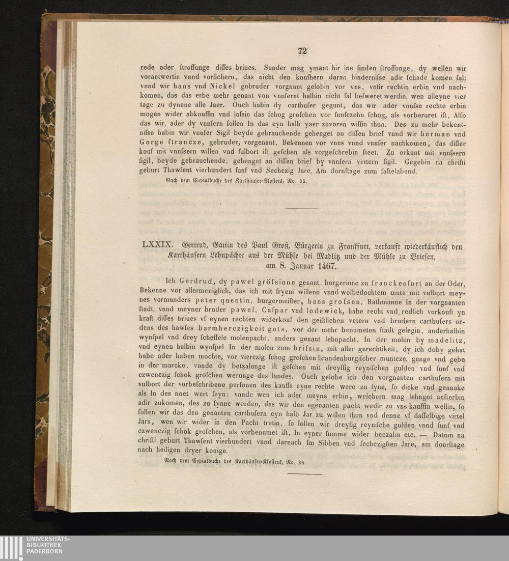 LXXIX. Gertrud, Gattin des Paul Groß, Bürgerin zu Frankfurt, verkauft wiederkäuflich[...]