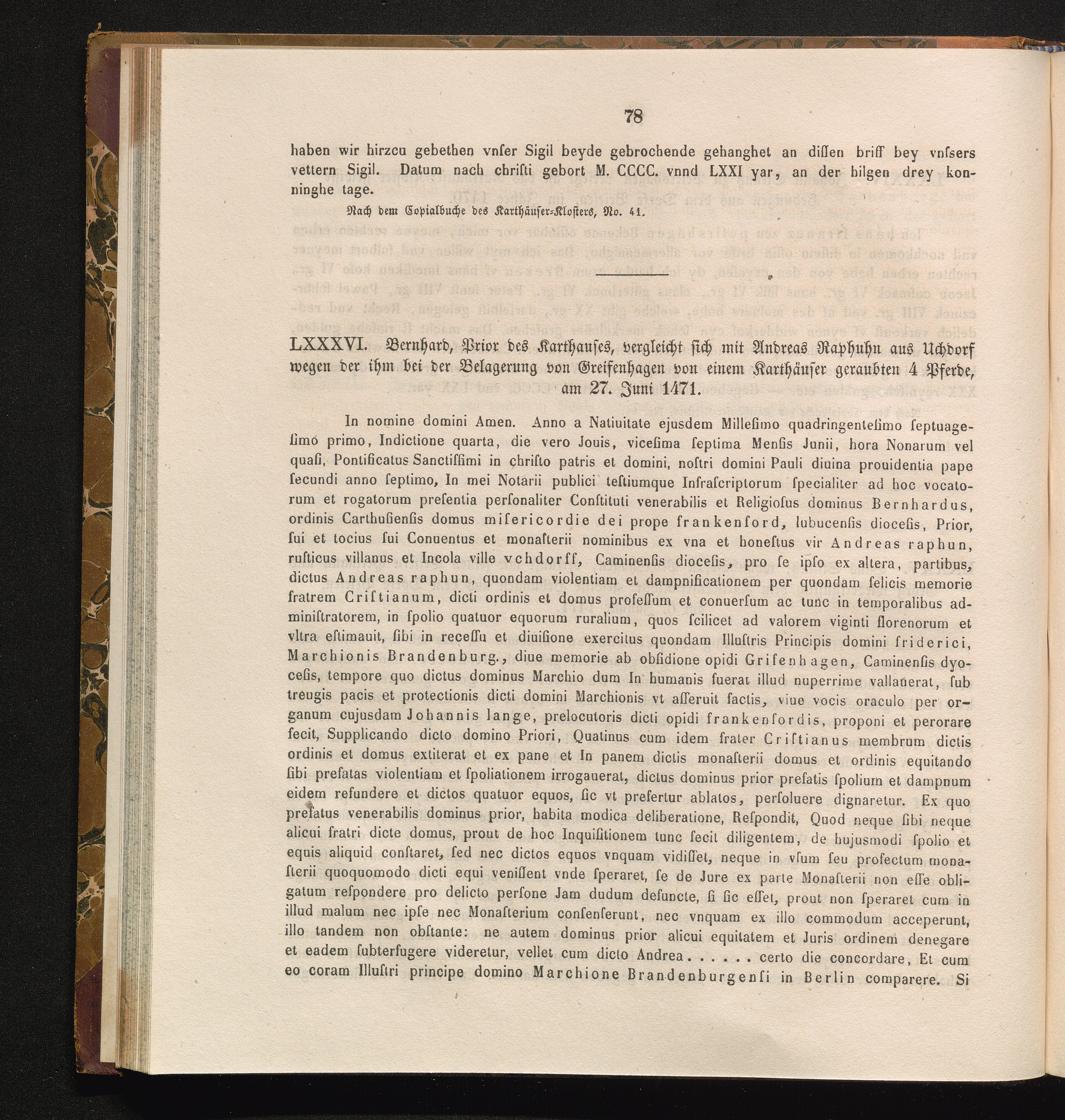LXXVI. Bernhard, Prior des Karthauses, vergleicht sich mit Andreas Raphuhn aus Uchdorf[...]