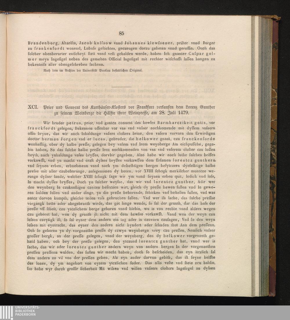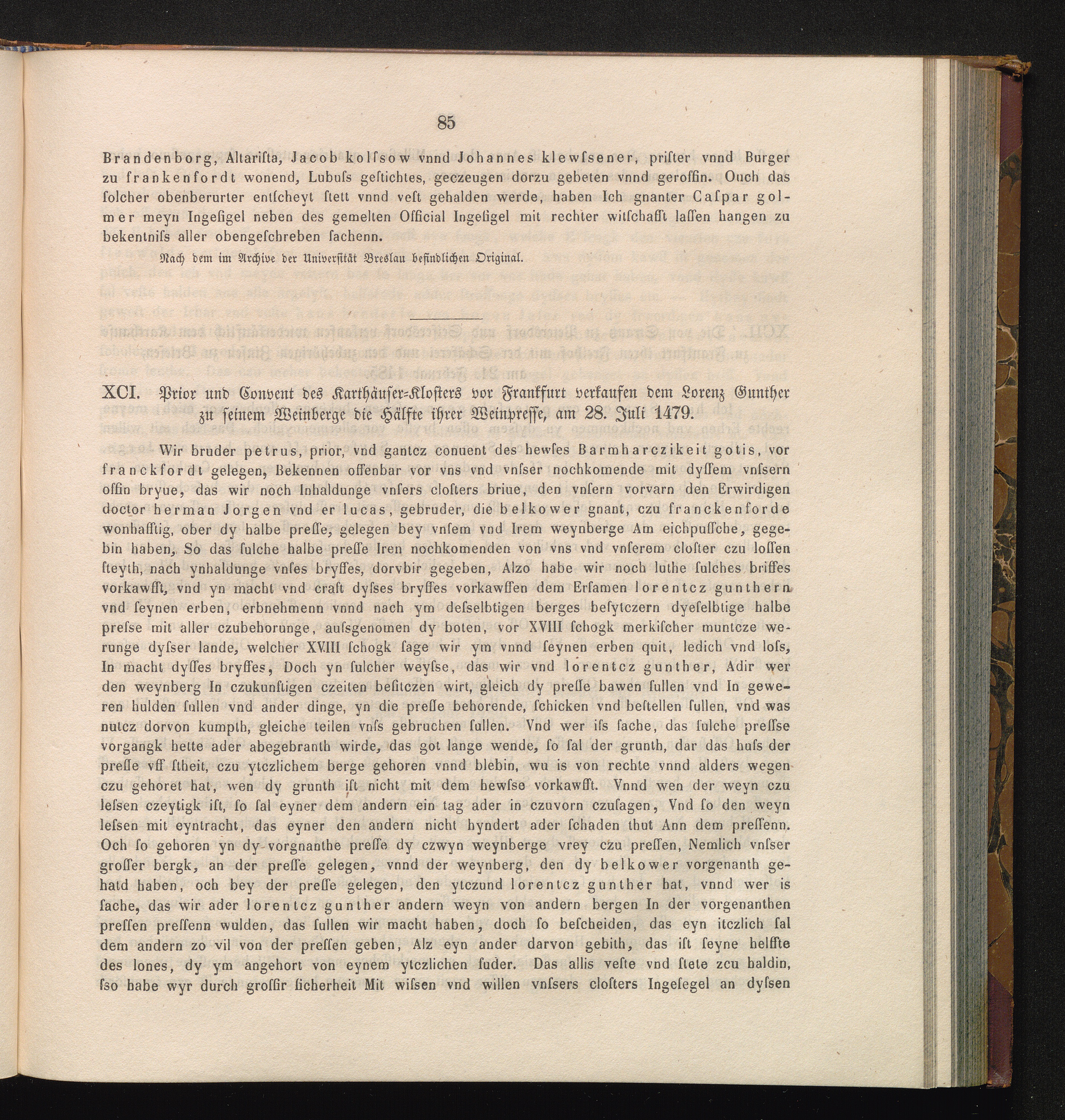 XCI. Prior und Convent des Karthäuser-Klosters vor Frankfurt verkaufen dem Lorenz[...]