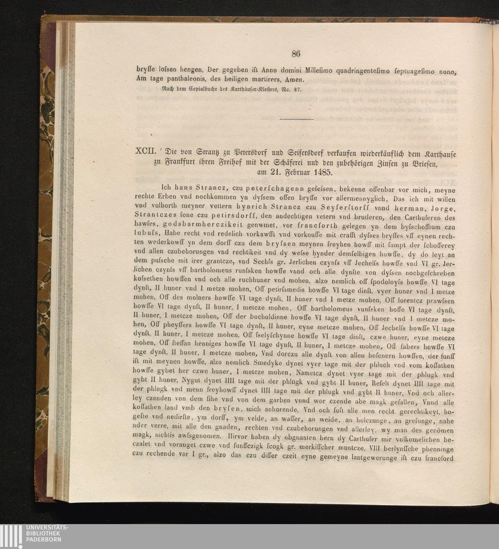 XCII. Die von Strantz zu Petersdorf und Seifersdorf verkaufen wiederkäuflich dem[...]