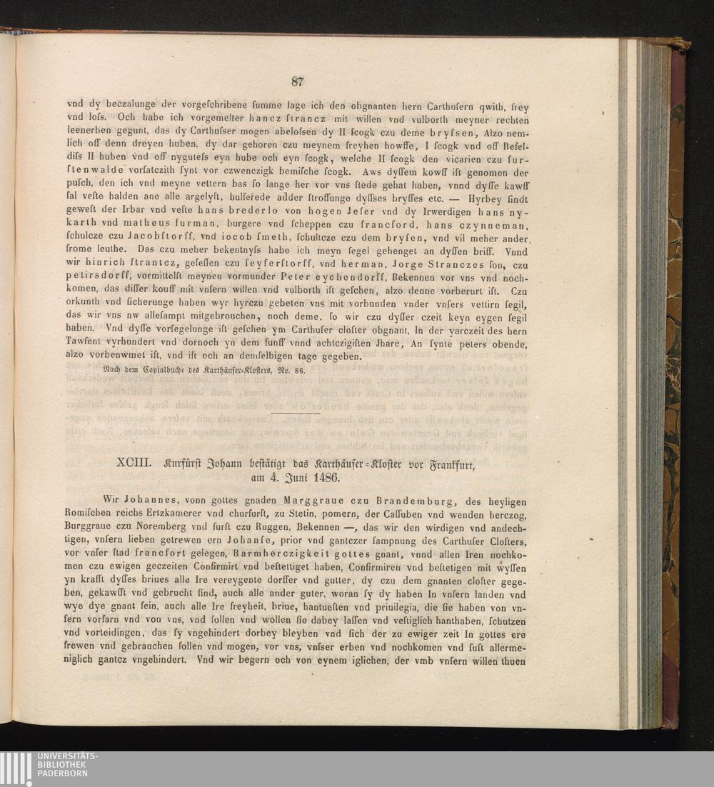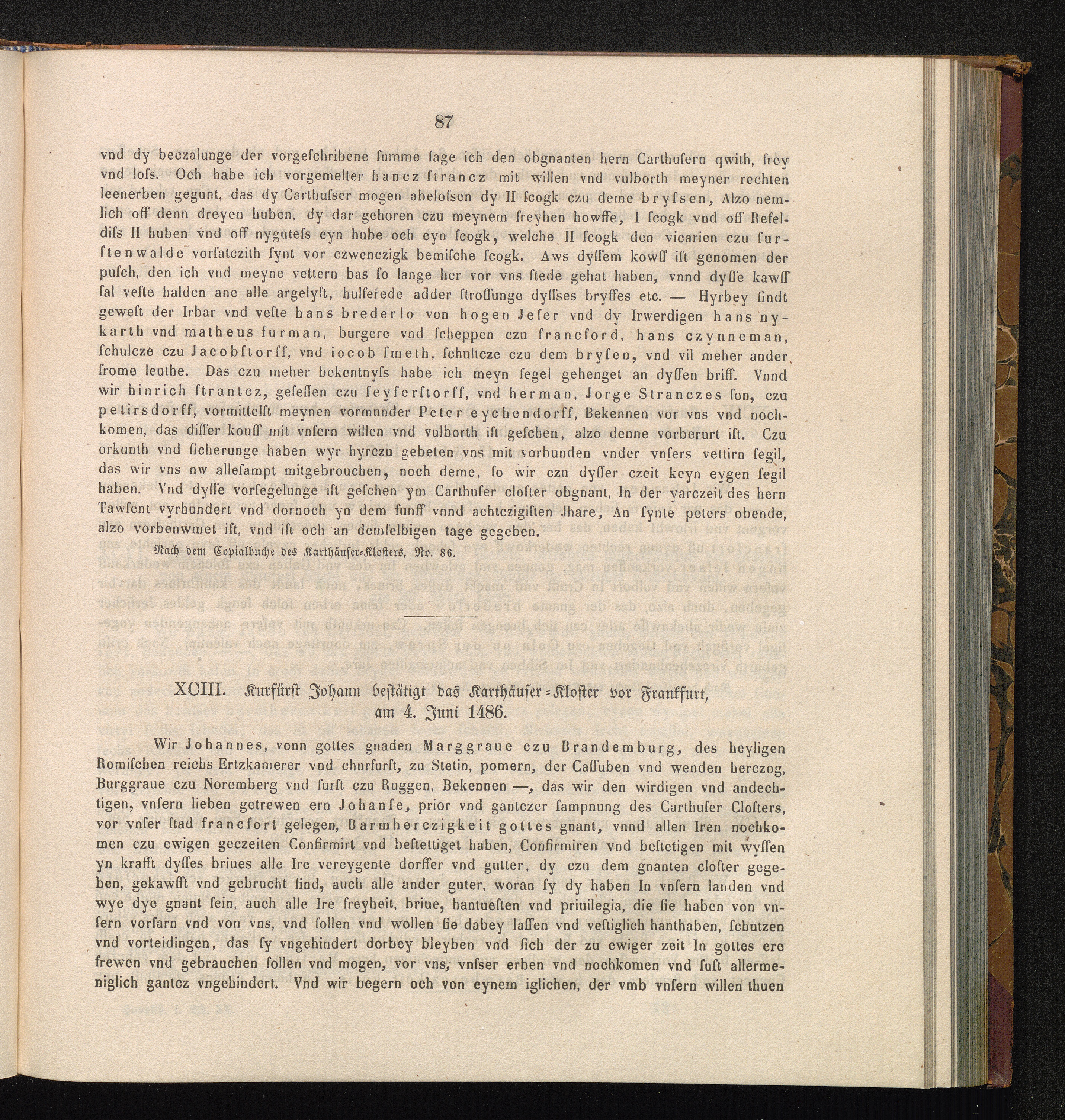 XCIII. Kurfürst Johann bestätigt das Karthäuser-Kloster vor Frankfurt, am 4. Juni[...]