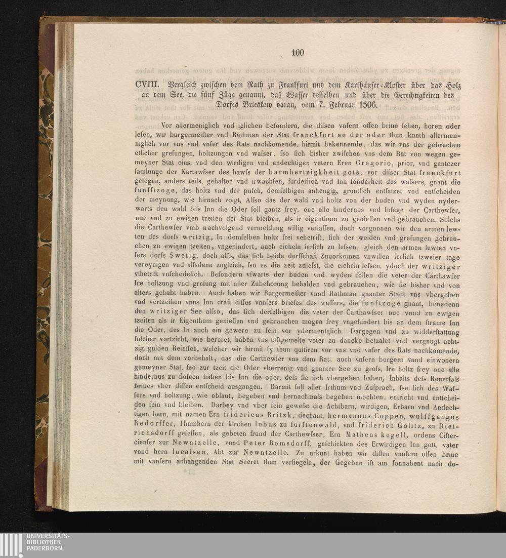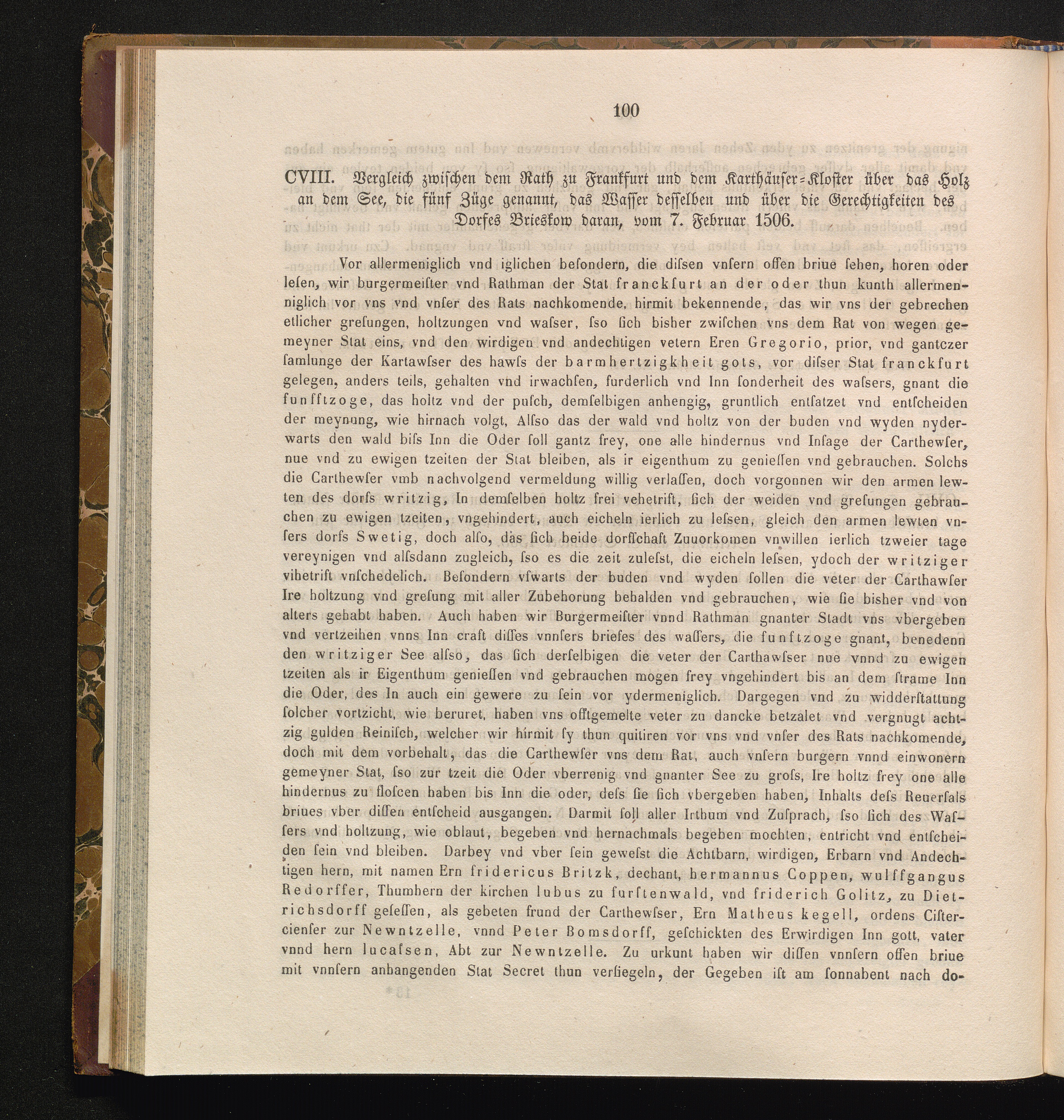 CVIII. Vergleich zwischen dem Rath zu Frankfurt und dem Karthäuser-Kloster über das[...]
