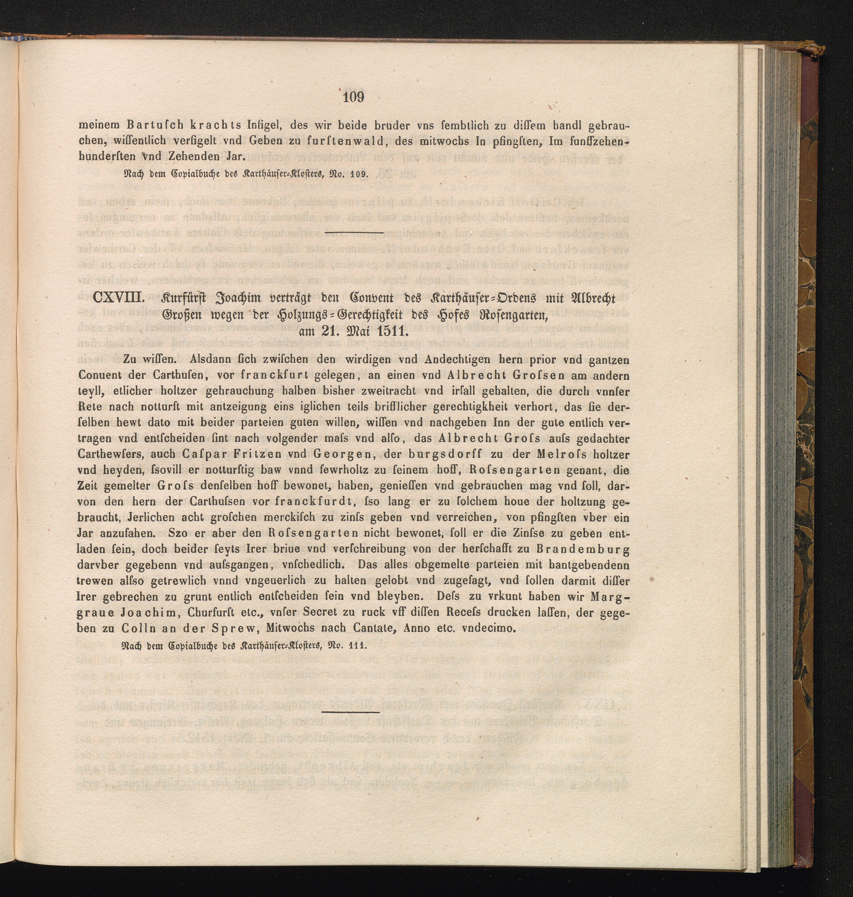 CXVIII. Kurfürst Joachim verträgt den Convent des Karthäuser-Ordens mit Albrecht[...]
