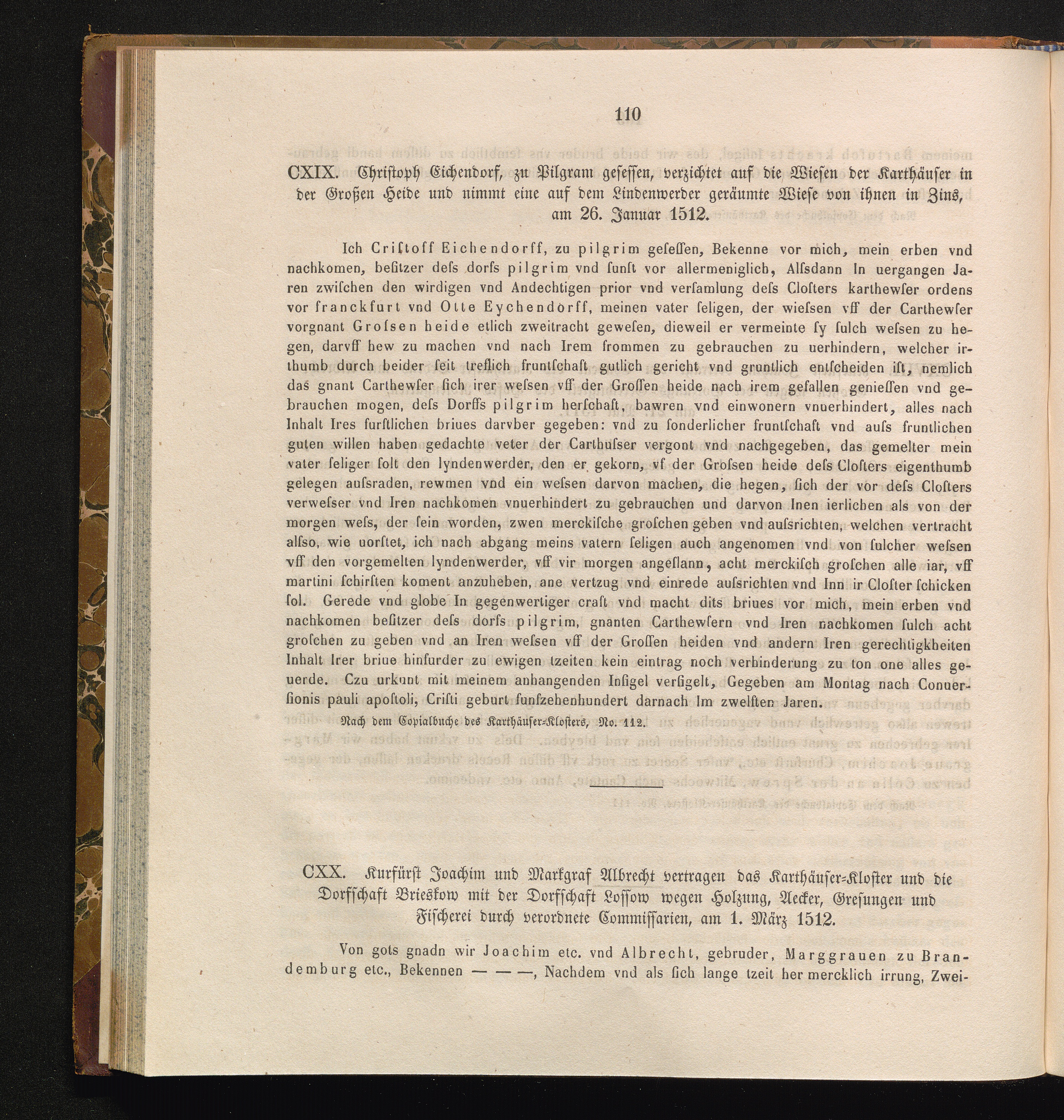 CXX. Kurfürst Joachim und Markgraf Albrecht vertragen das Karthäuser-Kloster und[...]