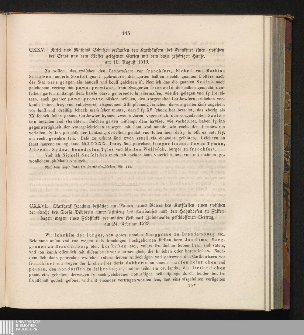 CXXVI. Markgraf Joachim bestätigt im Namen seines Vaters Kurfürsten einen zwischen[...]