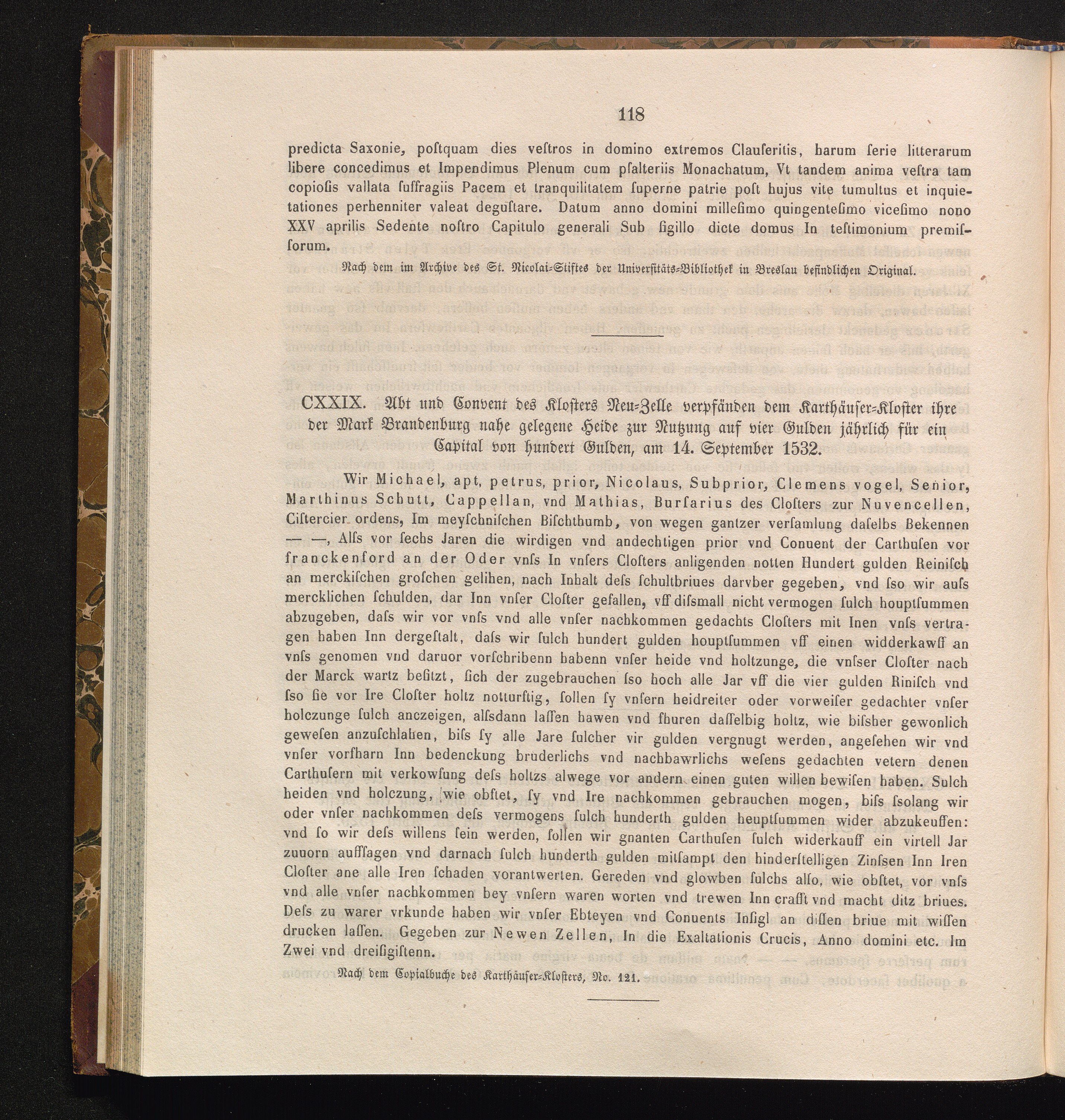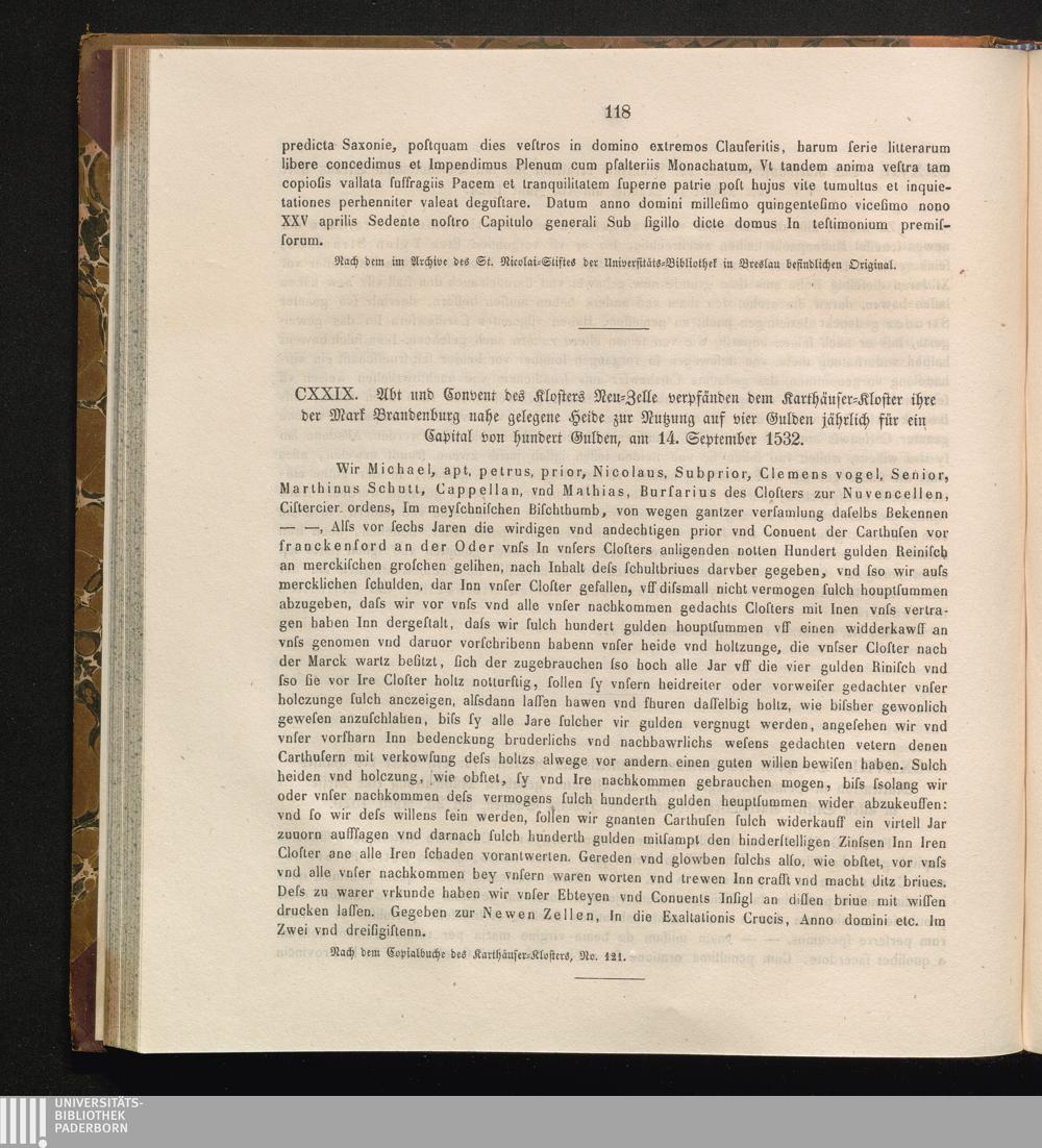 CXXIX. Abt und Convent des Klosters Neu-Zelle verpfänden dem Karthäuser-Kloster ihre[...]