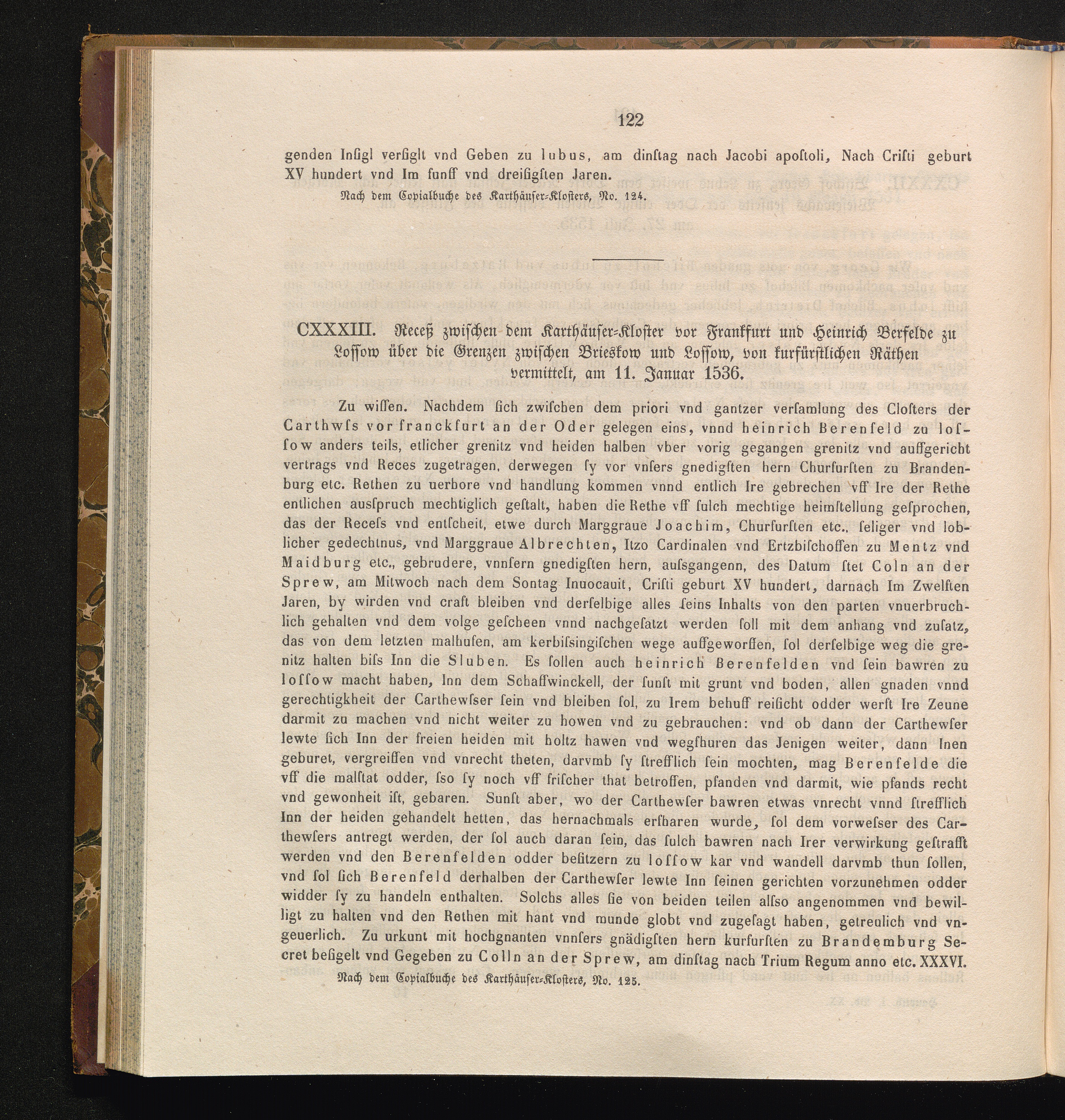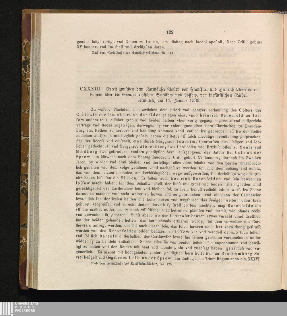CXXXIII. Receß zwischen dem Karthäuser-Kloster vor Frankfurt und Heinrich Berfelde[...]