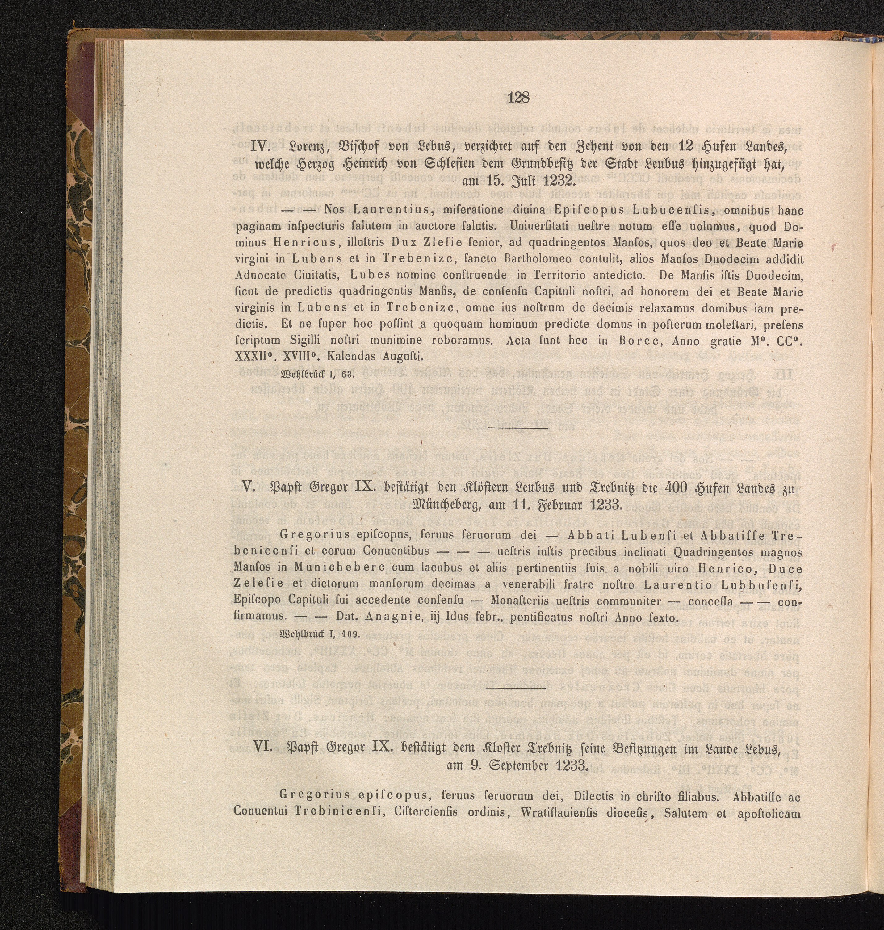 VI. Papst Gregor IX. bestätigt dem Kloster Trebnitz seine Besitzungen im Lande Lebus,[...]