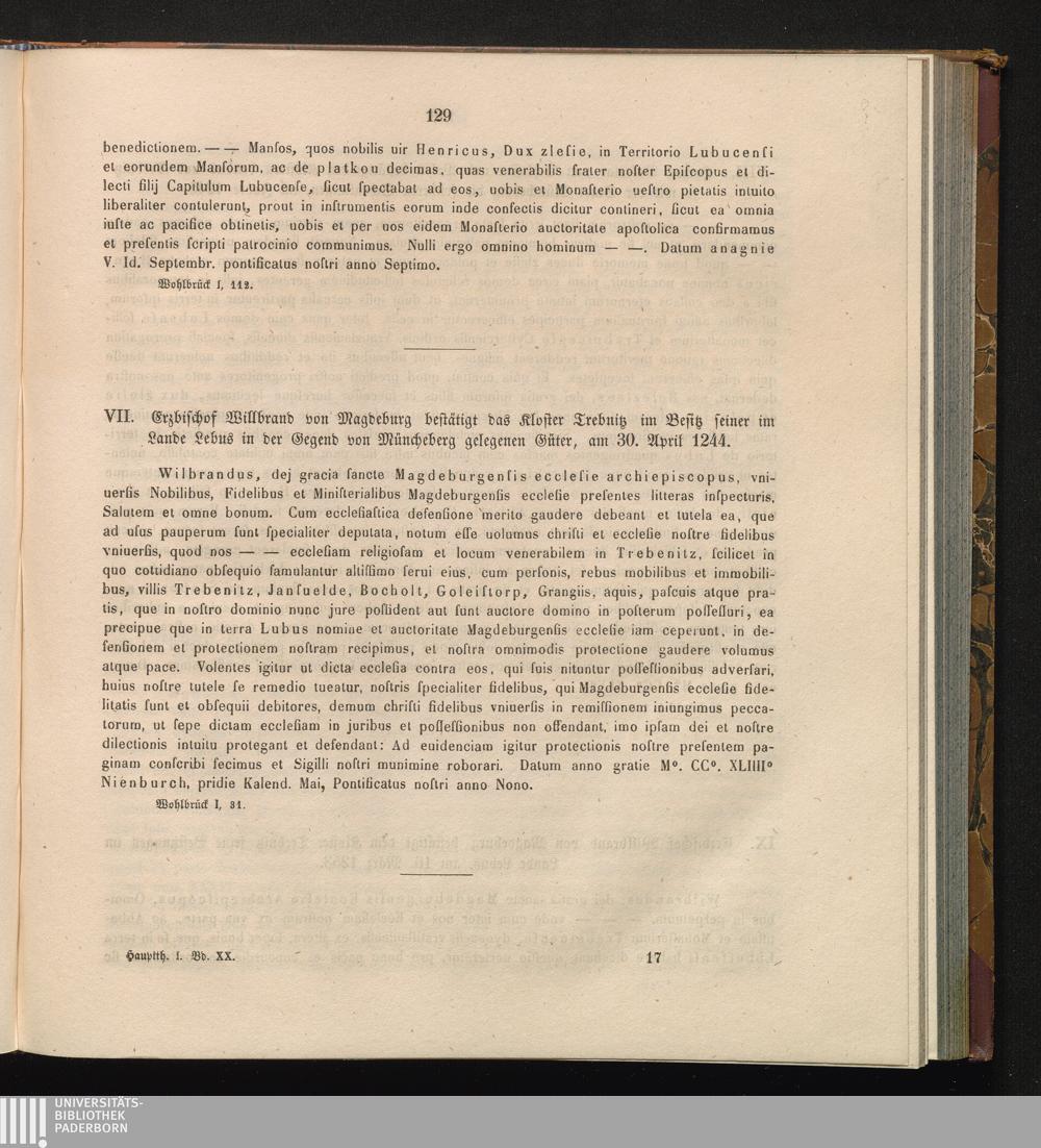 VII. Erzbischof Willbrand von Magdeburg bestätigt das Kloster Trebnitz im Besitz[...]