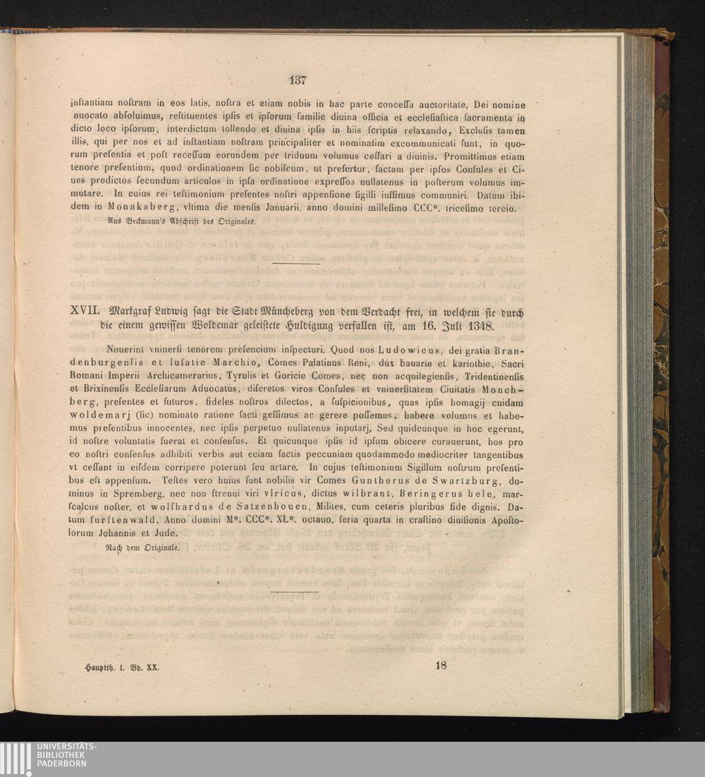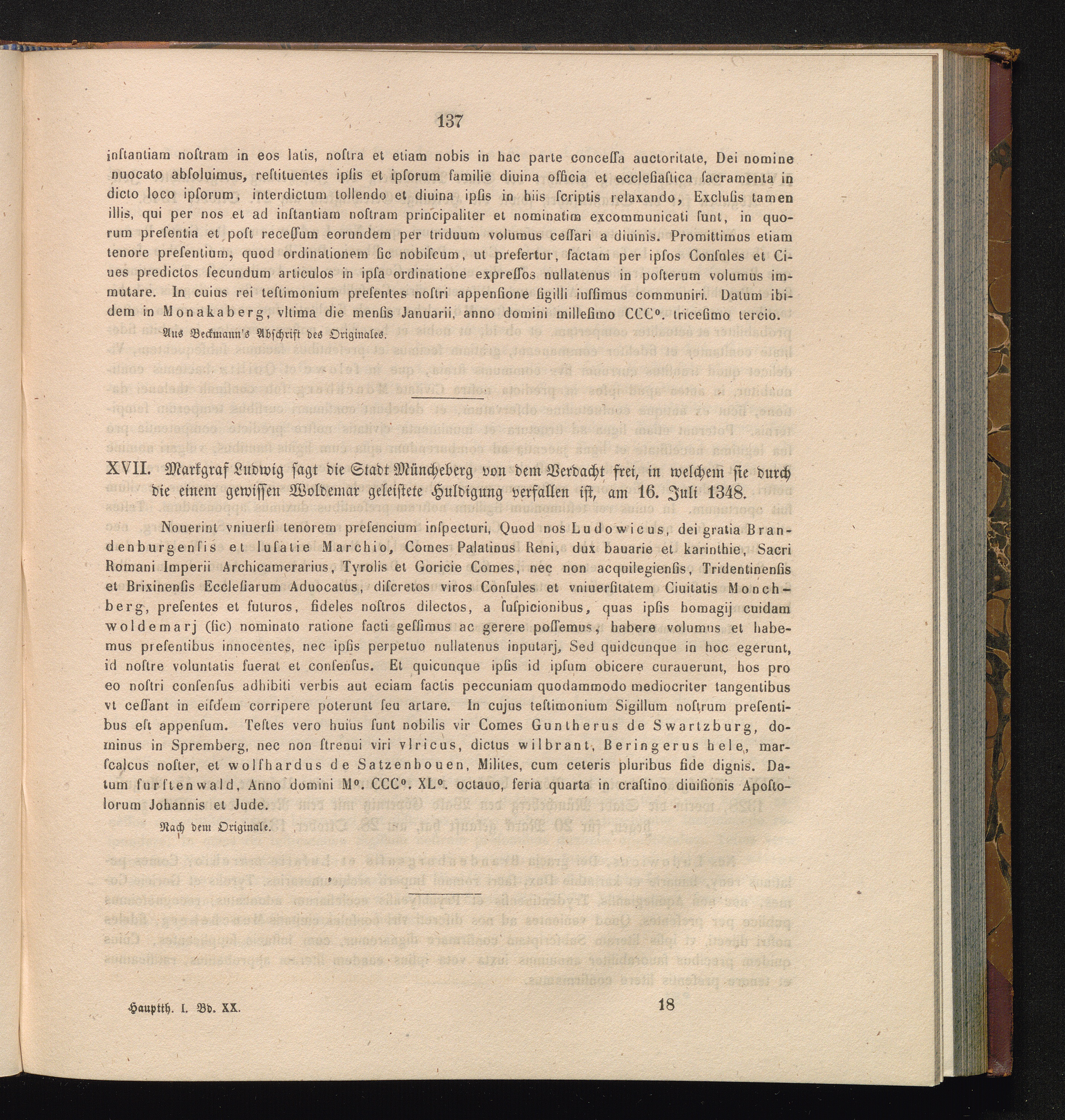 XVII. Markgraf Ludwig sagt die Stadt Müncheberg von dem Verdacht frei, in welchem[...]