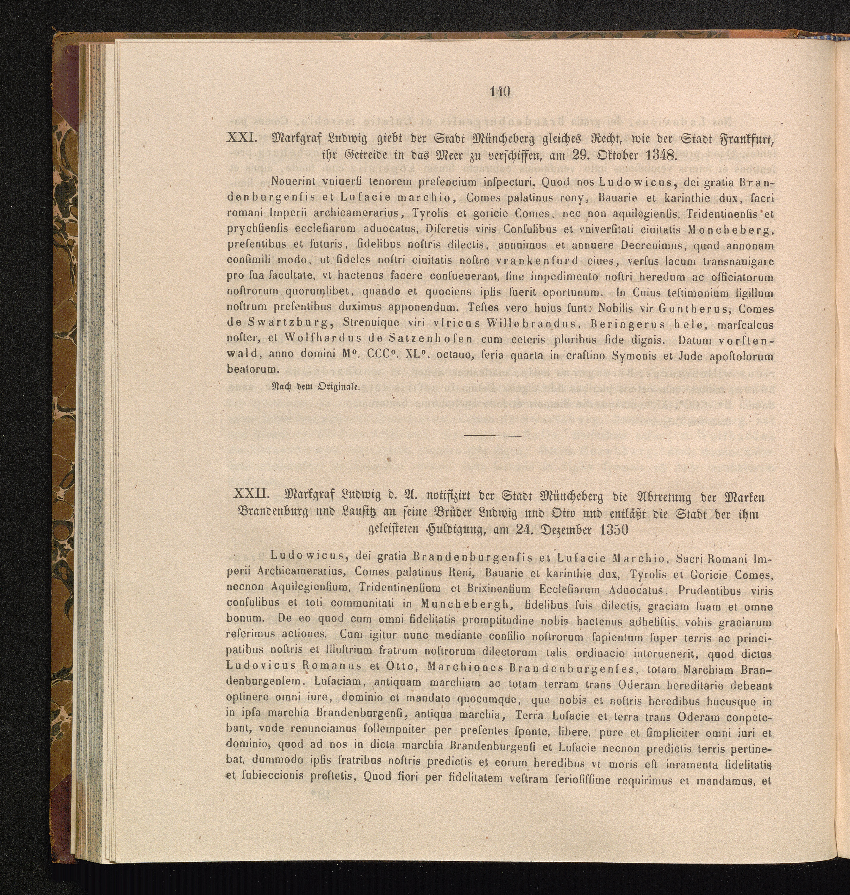 XXII. Markgraf Ludwig d. A. notifizirt der Stadt Müncheberg die Abtretung der Marken[...]