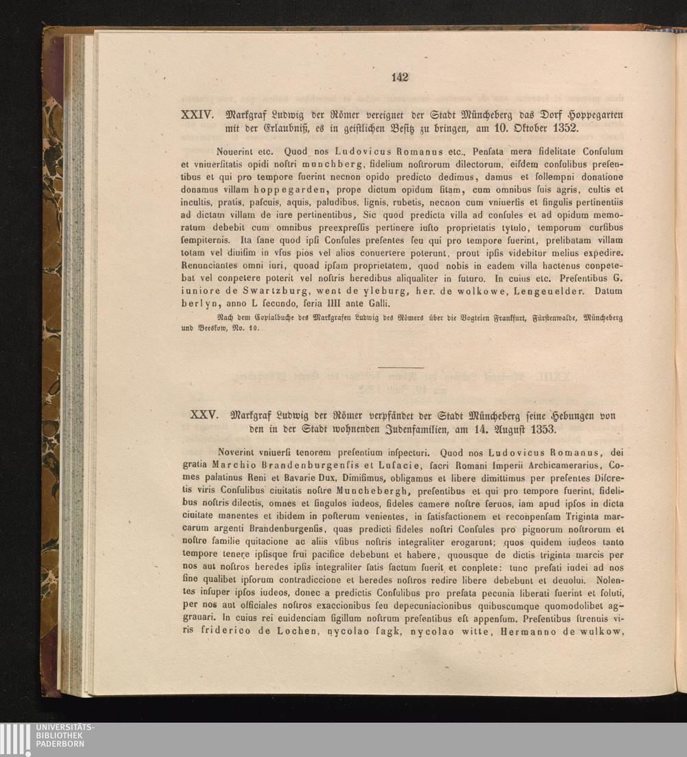 XXV. Markgraf Ludwig der Römer verpfändet der Stadt Müncheberg seine Hebungen von[...]