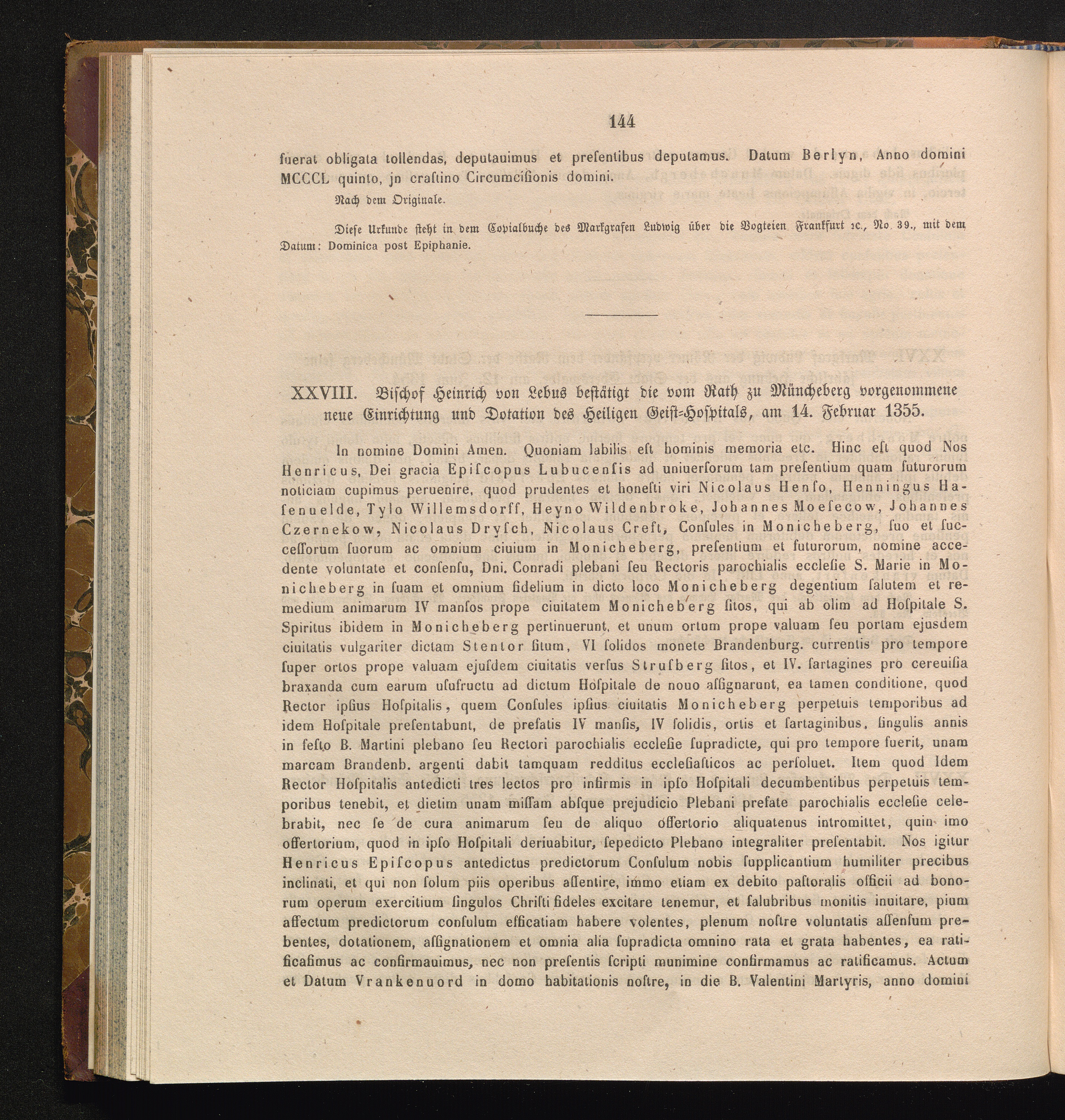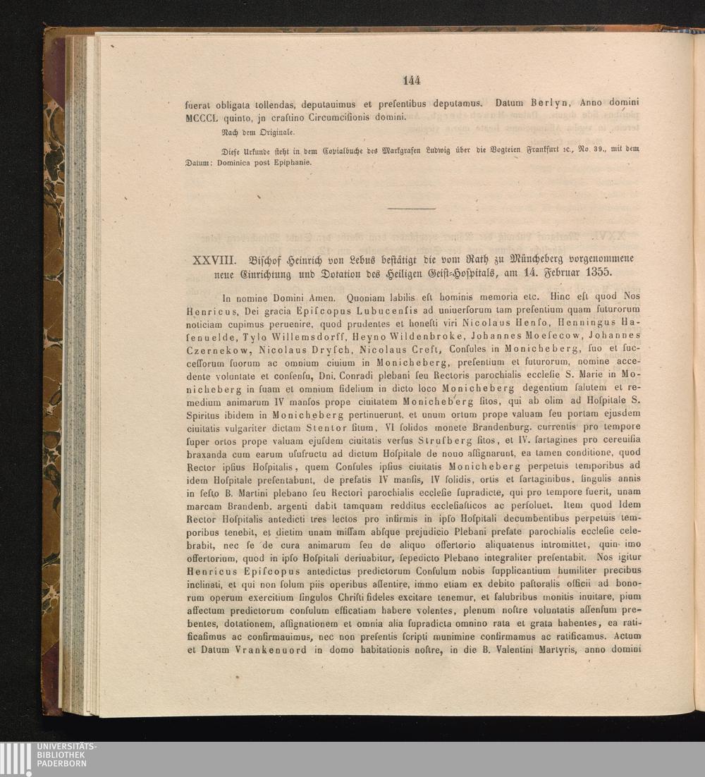 XXVIII. Bischof Heinrich von Lebus bestätigt die vom Rath zu Mühlenberg vorgenommene[...]