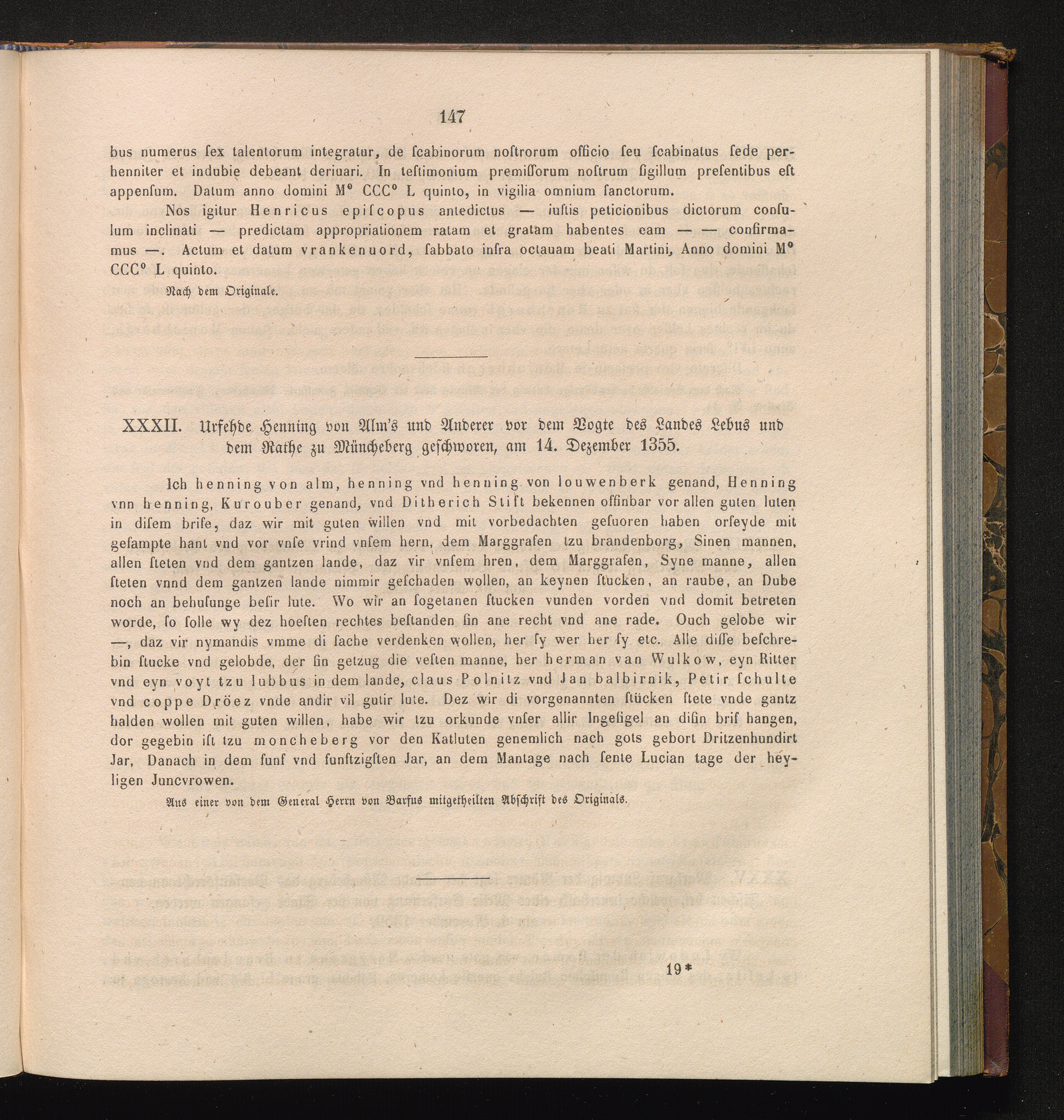 XXXII. Urfehde Henning von Alm's und Anderer vor dem Vogte des Landes Lebus und dem[...]