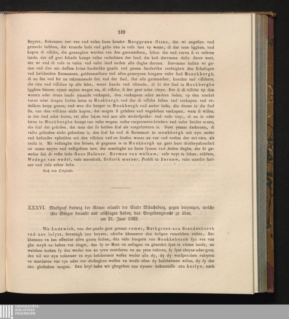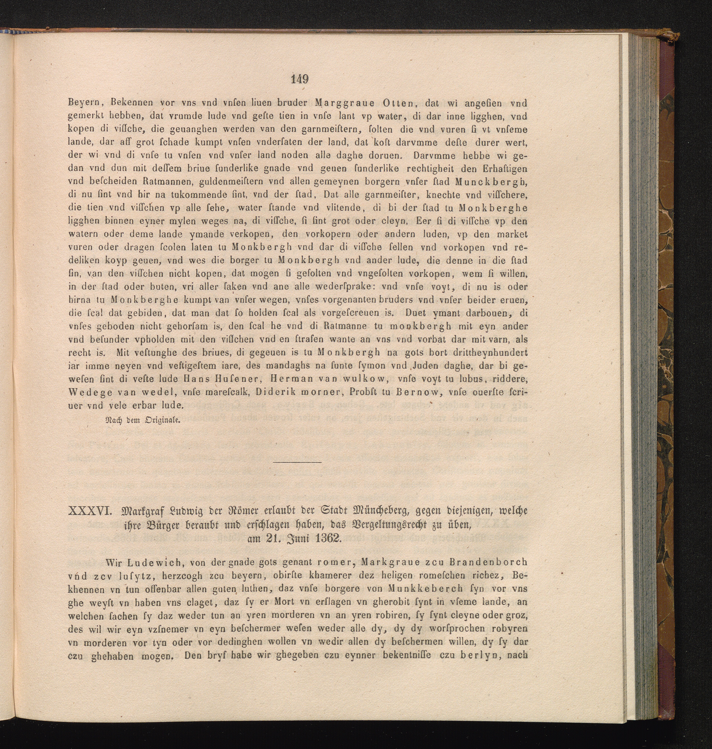 XXXVI. Markgraf Ludwig der Römer erlaubt der Stadt Müncheberg, gegen diejenigen,[...]