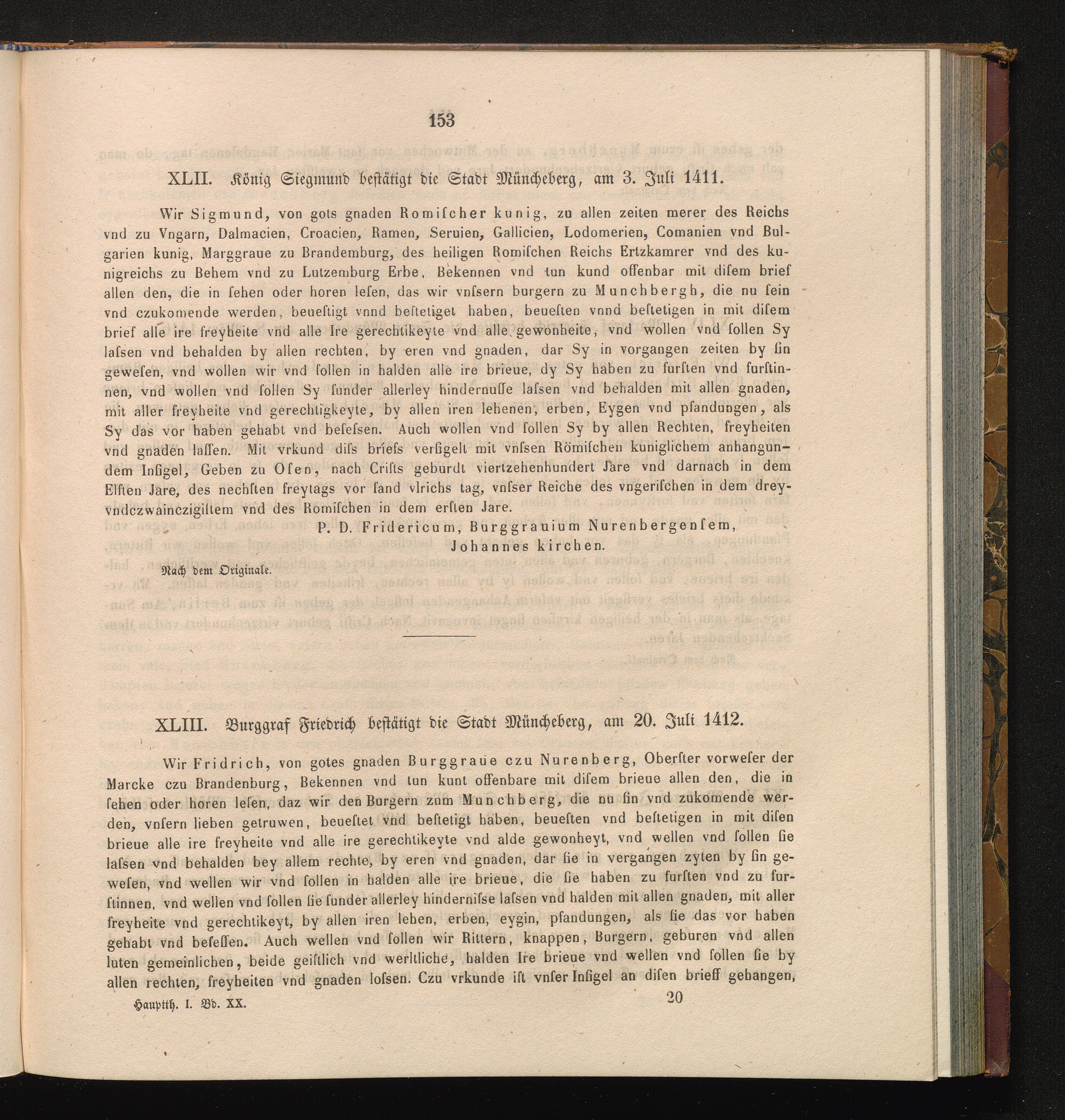 XLIII. Burggraf Friedrich bestätigt die Stadt Müncheberg, am 20. Juli 1412.