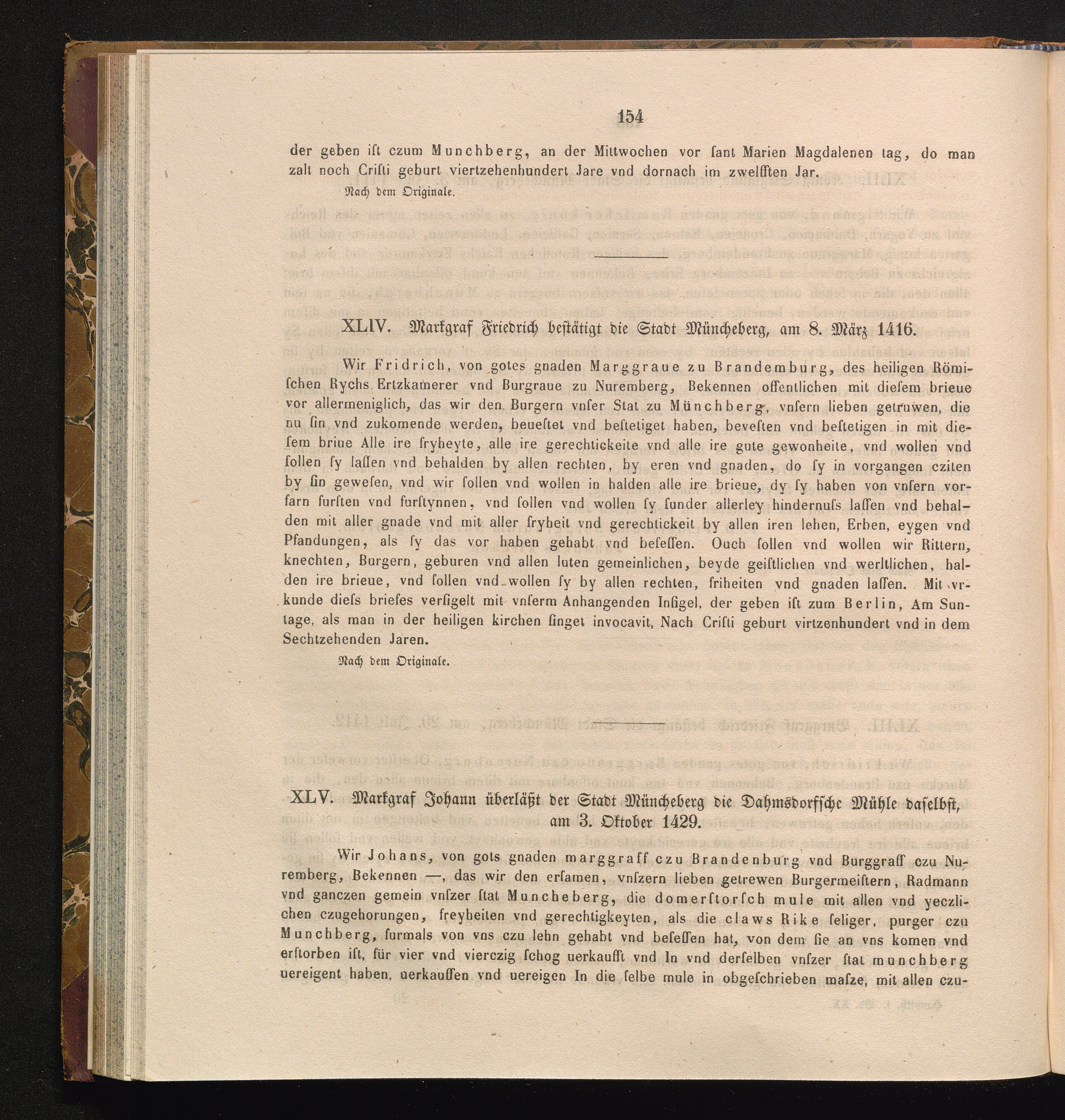XLV. Markgraf Johann überläßt der Stadt Müncheberg die Dahmsdorfsche Mühle daselbst,[...]